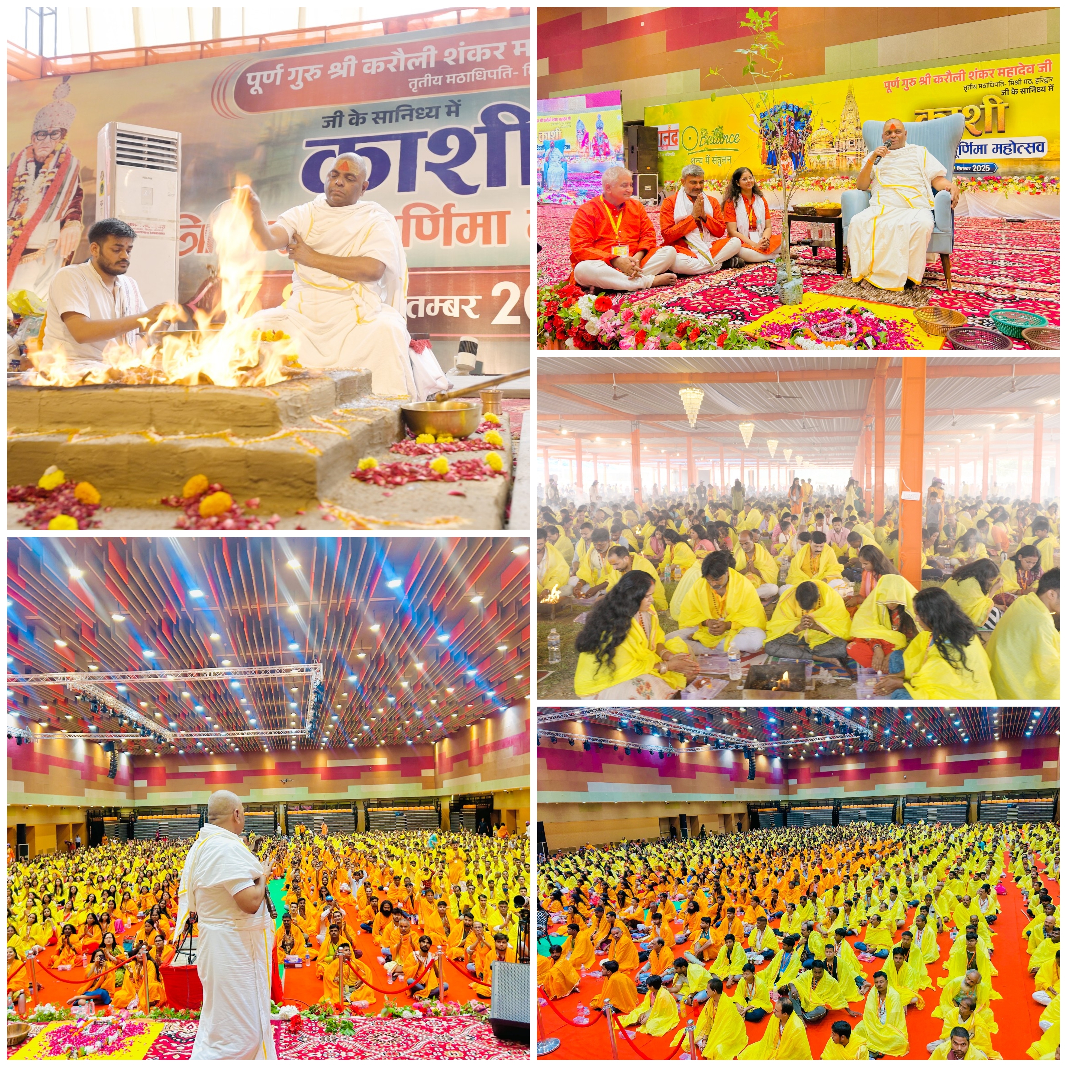 दीनदयाल उपाध्याय हस्तकला संकुल,काशी में मिश्री मठ,हरिद्वार के तृतीय मठाधिपति पूर्णगुरु करौली शंकर महादेव के सानिध्य में भव्य त्रिदिवसीय पूर्णिमा महोत्सव का आयोजन किया जा रहा है।आयोजन के द्वितीय दिवस प्रातः 10 बजे से पंच महाभूत शुद्धि एवं सिद्धि हेतु,हजारों साधको के साथ सामूहिक यज्ञ अनुष्ठान पूर्णगुरु करौली शंकर महादेव के सानिध्य में किया गया ताकि उन्हें मंत्र दीक्षा हेतु तैयार किया जा सके।साथ ही मंत्र दीक्षा कार्यक्रम एवं तंत्र क्रिया योग के विभिन्न चरणों में प्रवेश हेतु साधकों का चयन एवं दीक्षा गुरु जी द्वारा की गई।बता दे की महोत्सव की शुरुआत 7 सितंबर से हो गई है और 9 सितंबर को कार्यक्रम का समापन किया जायेगा।त्रिदिवसीय कार्यक्रम में देश विदेश से 50,000 से अधिक तंत्र क्रिया योग के दीक्षित साधक सम्मिलित हुए है।इस दौरान पूर्ण गुरु करौली शंकर महादेव ने कार्यक्रम में पहुंचे सभी भक्तों का स्वागत अभिनंदन किया।उन्होंने सभी भक्तों से कहा कि काशी नगरी की पावन भूमि पर आप सभी का बहुत-बहुत स्वागत है।उन्होंने कहा की आपने कभी सोचा नहीं होगा की काशी की पवित्र भूमि में हवन में आप सब आहुति देंगे, हम सबने बहुत पुण्य कर्म किए होंगे जिस कारण से हमें यह सौभाग्य प्राप्त हुआ है।पूर्ण गुरु ने कहा की दरबार ने एक व्यवस्था बना रखी है,जो लोग काशी विश्वनाथ धाम से जल लेकर के कानपुर के करौली शंकर महादेव धाम पदयात्रा करते हुए पहुंचकर महादेव को जल चढ़ाते हैं तो उन्हें एक दिवसीय महाहवन का पुण्य प्राप्त होता है।उन्ही पुण्य के आधार पर वह स्वयं के प्रार्थना/ संकल्प से अपनी नकारात्मक रोगी स्मृतियों को नष्ट करके स्वतः स्वस्थ होते हैं केवल उनकी आस्था विश्वास के दम पर ये सब कुछ होता है साथ ही वृंदावन में गोपेश्वर महादेव से यमुना नदी का जल लेकर के भी जो भक्त कानपुर स्थिति करौली शंकर महादेव धाम आता है उन्हें भी वही पुण्य प्राप्त होता है।उन्होंने कहा की अद्भुत है भगवान भोलेनाथ की महिमा।भक्तों संबोधित करते हुए पूर्ण गुरु ने कहा कि आप सभी परम सौभाग्यशाली हैं,जिनको यह दरबार मिला है दरबार के माध्यम से ही आप सबको दिव्य शक्तियों का साक्षात्कार हो रहा है।बाबा मां और पूर्ण गुरु आपको मार्गदर्शन के रूप में मिले हुए हैं.इस दौरान उन्होंने काशी के आयोजकों को भी इस आयोजन के लिए बहुत-बहुत धन्यवाद दिया।इतना ही नहीं पूर्ण गुरु करौली शंकर महादेव ने सभी भक्तों को मां कामाख्या और पूर्ण गुरु पूजनीय बाबाजी पंडित राधा रमण मिश्र का ध्यान कराते हुए एक संकल्प भी कराया।पूर्ण गुरु करौली शंकर महादेव ने कहा कि ओम नमः शिवाय मंत्रो का मंत्र है और ये एक महामंत्र है।साथ ही प्रकृति के संरक्षण एवं संवर्धन हेतु Nature with Balance कार्यक्रम के अंतर