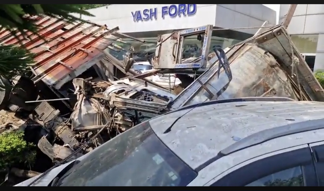 राजधानी देहरादून के मोहब्बेवाला क्षेत्र में उस समय हड़कंप मच गया, जब एक अनियंत्रित ट्रक अचानक फोर्ड कार शोरूम में जा घुसा। तेज़ रफ्तार से आ रहे इस ट्रक ने पहले शोरूम की दीवार को जोरदार टक्कर मारी और फिर अंदर खड़ी कई नई गाड़ियों को बुरी तरह क्षतिग्रस्त कर दिया।
