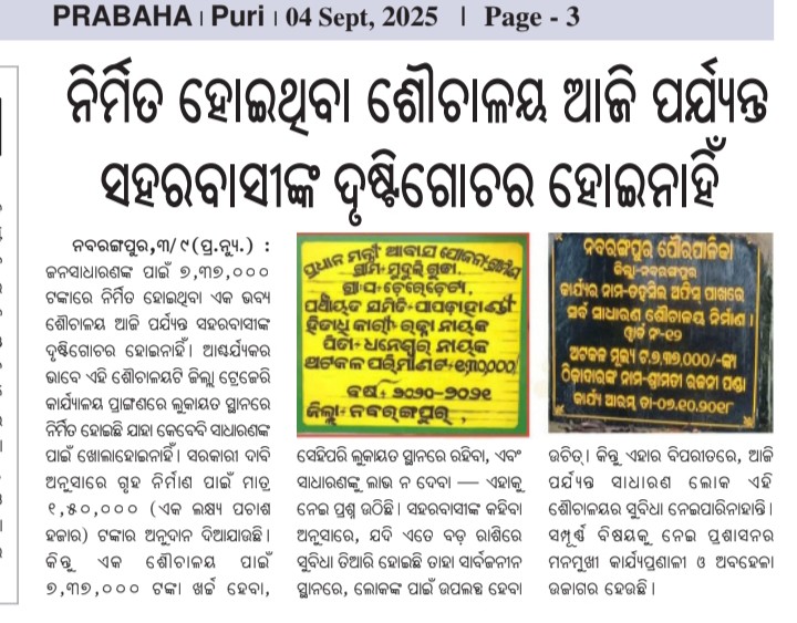 ନବରଙ୍ଗପୁରରେ ଭବ୍ୟ-ଶୌଚାଳୟ — ଜନସାଧାରଣଙ୍କୁ ଅଦୃଶ୍ୟ !