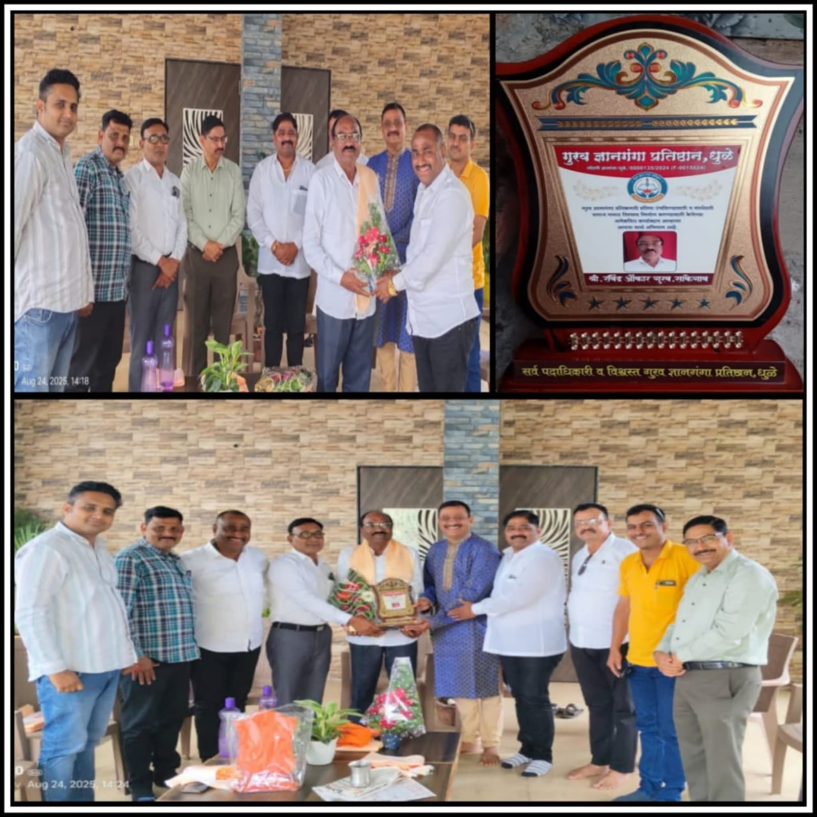 नाशिक येथे दिनांक 24 ऑगस्ट 2025 रविवार रोजी गुरव ज्ञानगंगा प्रतिष्ठानची तिमाही सभा संस्थेचे विश्वस्त संजय महादू गुरव यांच्या निवासस्थानी आयोजित करण्यात आली या सभेमध्ये गुरव ज्ञानगंगा प्रतिष्ठानचे विश्वस्त रवींद्र ओंकार गुरव यांचा गौरव करण्यात आला.