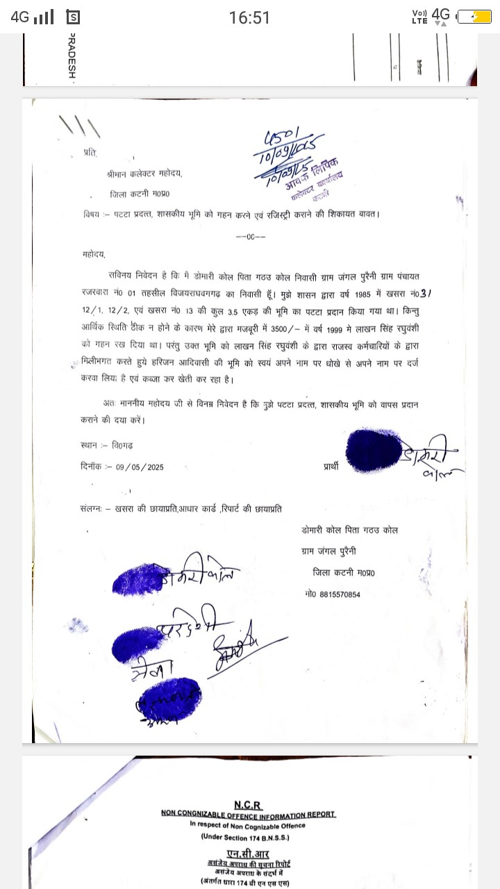 *सरकारी जमीन से लेकर आदिवासियों की जमीन तक महसूस नहीं, माफिया का तांडव बदस्तूर जारी* *विजयराघवगढ़ के ग्राम जंगल पुरेंनी का मामला*