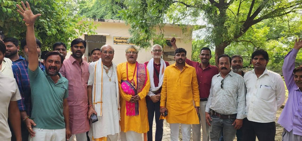 वृंदावन (मथुरा) : धर्म रक्षा संघ एवं अखिल भारत हिंदू महासभा के कार्यकर्ता साथ मिलकर पहुंचे पागल बाबा बिजली घर कार्यकताओं ने बताया कि यहां मीटर विभाग के अधिकारी