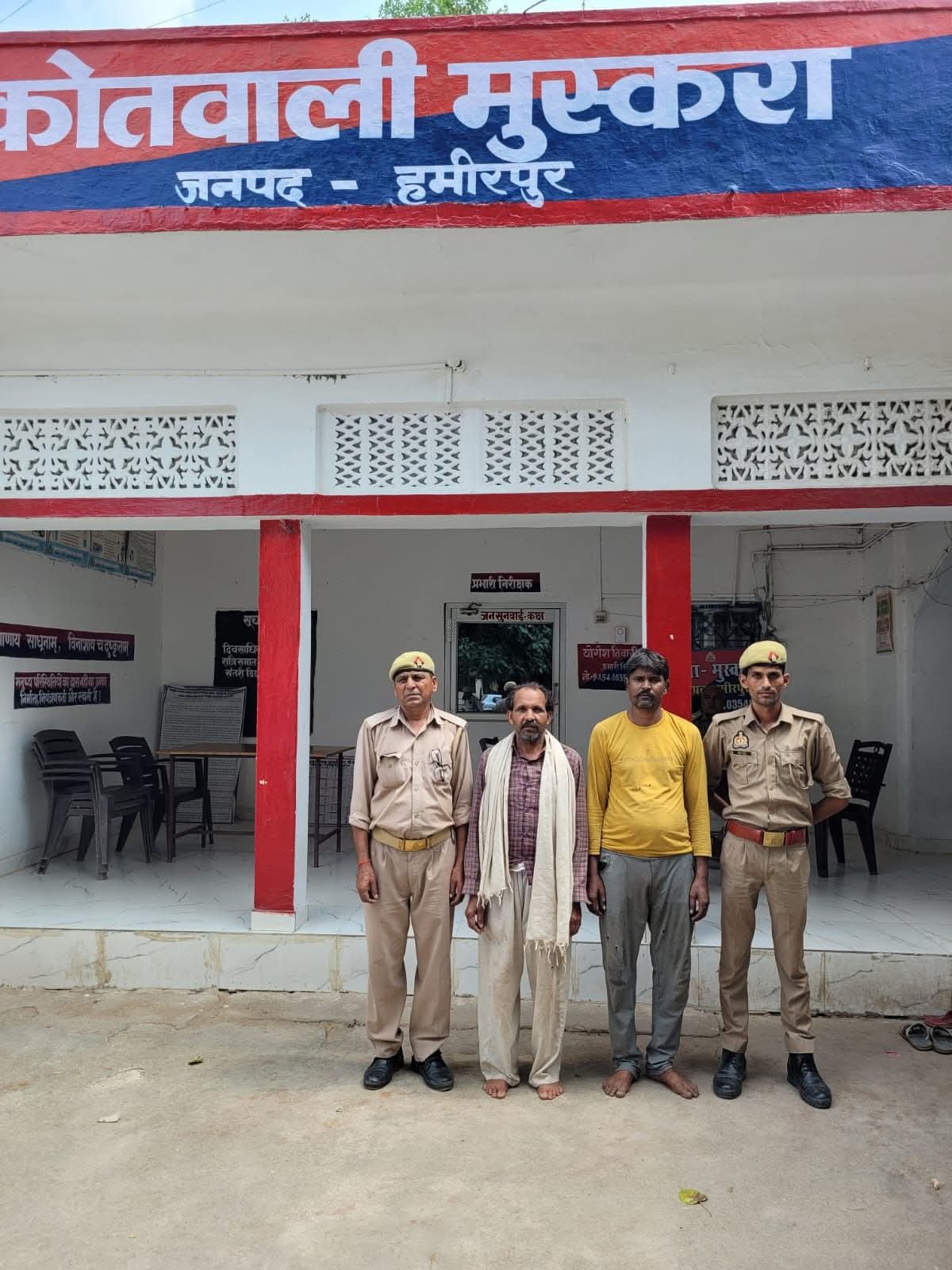 पुलिस अधीक्षक जनपद हमीरपुर के निर्देशन में अपराध नियंत्रण व वांछित/वारण्टी अभियुक्तों की गिरफ्तारी हेतु चलाए जा रहे अभियान के क्रम में आज दिनांक 12.09.2025 को थाना मुस्करा पुलिस द्वारा केश नं0 1825/20 धारा 323/504/506 भा0द0स0 थाना मुस्करा जनपद हमीरपुर से सम्बन्धित वारण्टी अभियुक्तगण 1.अयोध्या प्रसाद पुत्र गयादीन कुशवाहा 2.राममोहन उर्फ हलकुट्टा पुत्र रामेश्वर खंगार को गिरफ्तार कर विधिक कार्यवाही करते हुए माननीय न्यायालय भेजा गया ।
