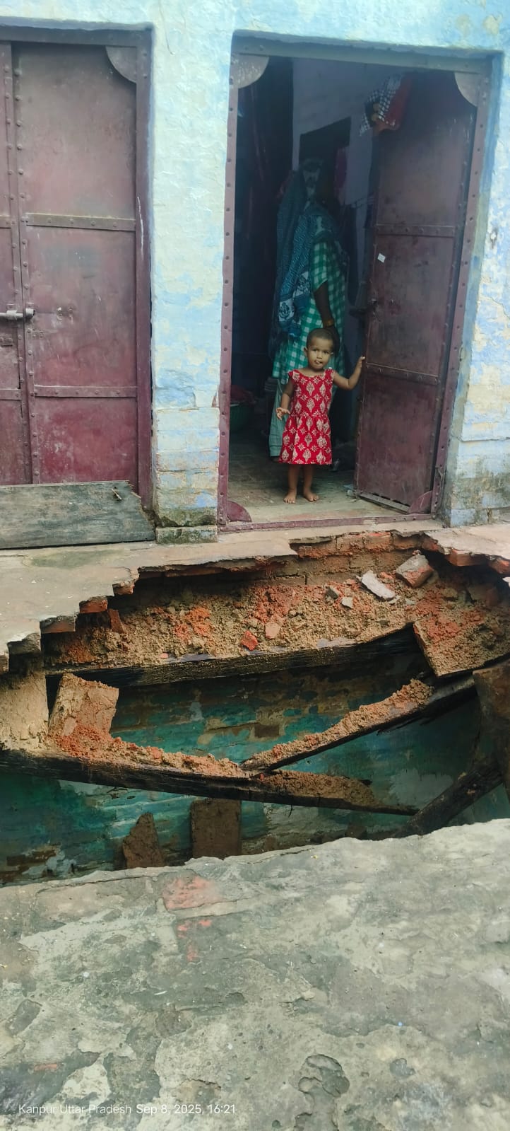 बीती रात जर्जर घर की गिरी छत पूरा घर जर्जर अवस्था में, कई बार शासन प्रशासन को दिया गया लिखित पत्र नहीं हुई किसी भी तरह का कोई सुनवाई जी हां आपको बताते चलें कानपुर महानगर मोहल्ला पटकापुर ब्रह्म चट्टे के पास मकान नम्बर 19/226 जो कि सदियों पुराना मकान जर्जर हालत में है। जिसके 6 हिस्से दार है, लेकिन आपसी बटवारे के विवाद में अटका हुआ है। पूरा मामला क्यों कि एक हिस्सेदार उक्त खंडहर को बांटने से रोकना चाहता है। वह सभी को भगा कर सभी के पैतृक मकान पर कब्जा करना चाहता है।इस बरसात में भारी बारिश से बीती रात अचानक एक हिस्से की छत भरभरा कर गिर गई। इस पुराने घर में रहते है छोटे छोटे मासूम बच्चे,अचानक छत धंस गई। छत धंसने (गिरने) से किसी की भी जान मॉल की हानि नहीं हुई सभी सुरक्षित है। लेकिन कभी भी हो सकता है बड़ा हादसा जा सकती है कई लोगों की जान। पुरानी इमारत चारों तरफ से रही है डग मगा, दो मंजिल की इमारत को बना दिया ताबूत पन्नी तिरपाल लगा लगा कर ताकि कोई देख न सके कि अन्दर क्या घटना हो रही है।पर जब होगा कोई बड़ा हादसा तो सभी अपनी अपनी सफाई देते आएंगे नजर। बड़ी बात ये है कि प्रशासनिक अधिकारियों को जानकारी होने के बावजूद कोई जाँच तक नहीं क्या किसी बहुत बड़ी घटना का है इंतजार । 6 हिस्सेदारों में जो उक्त खण्डर को गिरवाने के पक्ष में हैं वह हो रहे हैं हैरान व परेशान दर-दर भटक रहे हैं "लगा रहे हैं गुहार"ताकि कोई बड़ी दुखद घटना से पहले हो सके पुनः निर्माण। सभी की छतें बारिश के पानी से रही है टपक, पूरे घर में आता है बारिश का पानी और यही पानी बनेगा खतरनाक जो की कभी भी हो सकता है बड़ा हादसा। जा सकती है कई लोगों की जान। अब देखने वाली बात यह है क्या समय रहते शासन प्रशासन कोई बड़ा ठोस कदम उठाता है या नहीं।