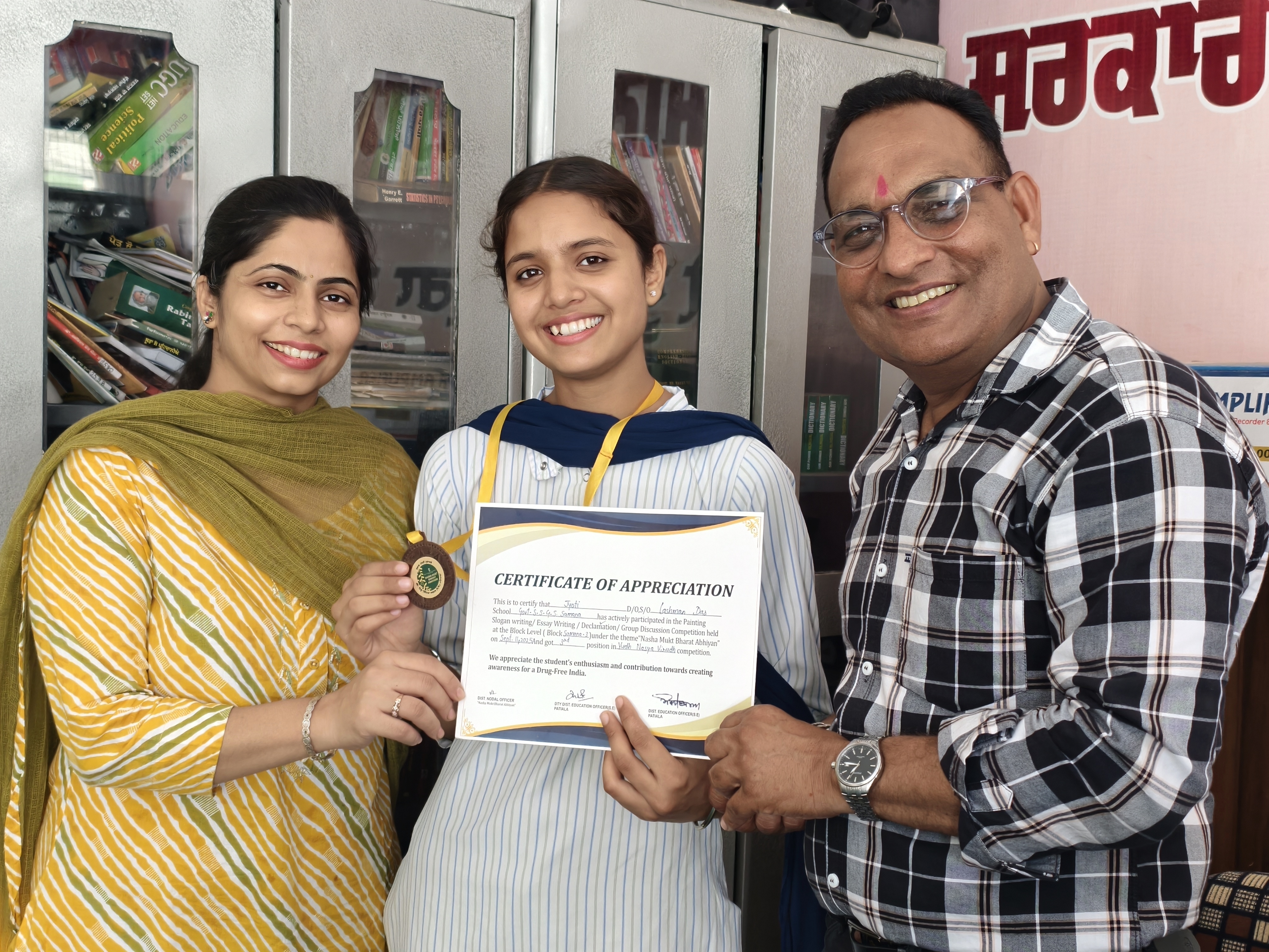 ਯੁੱਧ ਨਸ਼ਿਆਂ ਵਿਰੁੱਧ ਮੁਹਿੰਮ ਦੇ ਤਹਿਤ ਜਨ ਜਨ ਵਿੱਚ ਜਾਗਰੂਕਤਾ ਲਿਆਣ ਸਬੰਧੀ ਸਮਾਨਾ ਬਲਾਕ ਦੇ ਸਕੂਲਾਂ ਵਿੱਚ ਕਵਿਤਾ, ਭਾਸ਼ਨ, ਗਰੁੱਪ ਡਿਸਕਸ਼ਨ, ਪੇਂਟਿੰਗ ਮੁਕਾਬਲੇ ਕਰਵਾਏ ਗਏ ਬੀਐਨਓ ਹੈਡ ਮਾਸਟਰ ਭੂਸ਼ਣ ਕੁਮਾਰ ਜੀ ਦੀ ਦੇਖ ਰੇਖ ਵਿੱਚ ਸਰਕਾਰੀ ਹਾਈ ਸਕੂਲ ਮਵੀ ਕਲਾਂ ਵਿਖੇ ਇਹਨਾਂ ਮੁਕਾਬਲਿਆਂ ਵਿੱਚ ਵੱਖ-ਵੱਖ ਸਕੂਲਾਂ ਨੇ ਹਿੱਸਾ ਲਿਆ ਇਸੇ ਲੜੀ ਦੇ ਤਹਿਤ ਪੀਐਮ ਸ਼੍ਰੀ ਸਰਕਾਰੀ ਸੀਨੀਅਰ ਸੈਕੰਡਰੀ ਕੰਨਿਆ ਸਕੂਲ ਸਮਾਣਾ ਦੇ ਵਿਦਿਆਰਥੀਆਂ ਨੇ ਵੀ ਹਿੱਸਾ ਲਿਆ ਜਿਸ ਵਿੱਚ ਉਹਨਾਂ ਨੇ ਹੇਠ ਲਿਖੀਆਂ ਪੁਜੀਸ਼ਨਾਂ ਹਾਸਿਲ ਕਰਕੇ ਮੈਡਲ 🥇🥇🥇 ਕੀਤੇ ਕਵਿਤਾ ਮੁਕਾਬਲੇ ਵਿੱਚ ਨੇਹਾ ਨੇ ਦੂਜਾ ਸਥਾਨ ਪ੍ਰਾਪਤ ਕੀਤਾ ਗਰੁੱਪ ਡਿਸਕਸ਼ਨ ਮੁਕਾਬਲੇ ਵਿੱਚ ਜੋਤੀ ਨੇ ਤੀਸਰਾ ਸਥਾਨ ਪ੍ਰਾਪਤ ਕੀਤਾ ਪੇਂਟਿੰਗ ਮੁਕਾਬਲੇ ਵਿੱਚ ਸਿਮਰਨ ਨੇ ਦੂਜਾ ਸਥਾਨ ਪ੍ਰਾਪਤ ਕਰਕੇ ਸਮਾਣਾ ਬਲਾਕ ਵਿੱਚ ਪੀਐਮ ਸ਼੍ਰੀ ਕੰਨਿਆ ਸਕੂਲ ਦਾ ਨਾਮ ਰੋਸ਼ਨ ਕੀਤਾ ਪ੍ਰਿੰਸੀਪਲ ਮਨਜਿੰਦਰ ਕੌਰ ਬੱਸੀ ਲੈਕਚਰਾਰ ਸੁਸ਼ੀਲ ਕੁਮਾਰ ਸ਼ਰਮਾ, ਹਿਤਅਭਿਲਾਸ਼ੀ ਜੀ, ਸਤਨਾਮ ਜੀ ਮਨਜਿੰਦਰ ਸਿੰਘ ਕਮਲਦੀਪ ਸਿੰਘ ਇਸ਼ੂ ਬੱਬਰ ਮੀਨਾਕਸ਼ੀ ਗਰਗ ਸ਼ਿਵਾਨੀ ਅਮਨਦੀਪ ਮਲਕੀਤ ਸਿੰਘ ਗੁਰਦੀਪ ਸਿੰਘ ਸੁਮਿਤ ਕੁਮਾਰ ਮੁਨੀਸ਼ ਕੁਮਾਰ ਸੀਮਾ ਗੁਪਤਾ ਕੰਨੂ ਪ੍ਰੀਆ ਨੀਨਾ ਬਾਂਸਲ ਜੋਤੀ ਕਿਰਨ ਰੀਟਾ ਰਾਣੀ ਵਨੀਤਾ ਰਾਣੀ ਰੀਚਾ ਗੁਪਤਾ ਪ੍ਰਵੀਨ ਕੁਮਾਰੀ ਆਦਿ ਟੀਚਰ ਵਿਦਿਆਰਥੀਆਂ ਦੀ ਇਨਾਂ ਉਪਲਬਧੀਆਂ ਤੇ ਬਹੁਤ ਖੁਸ਼ ਹੋਏ