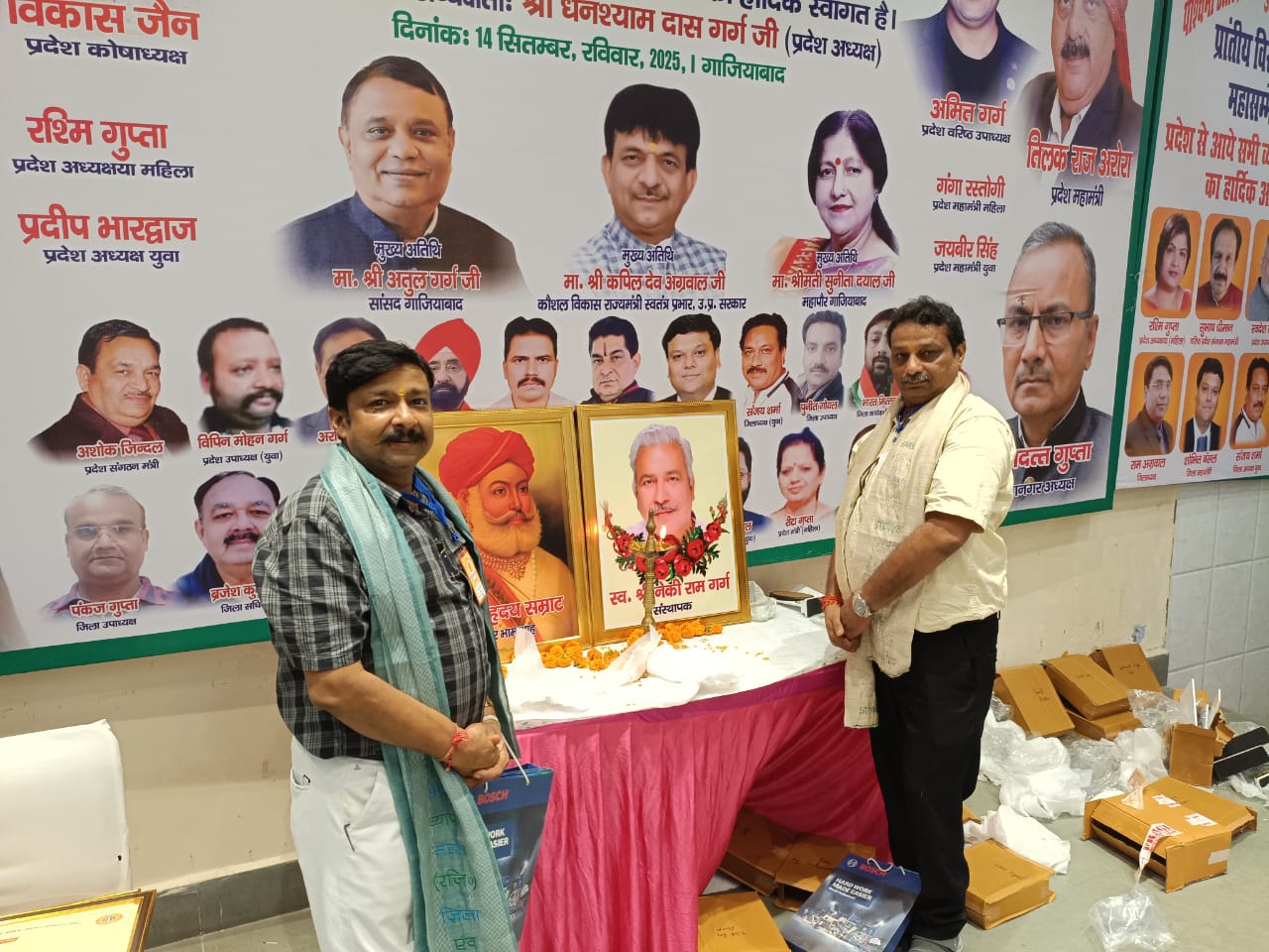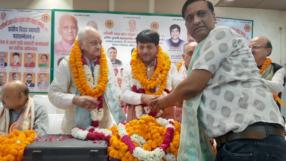 कैराना, गाजियाबाद के कविनगर के आपका भवन मे आयोजित पश्चिमी उत्तर प्रदेश संयुक्त उद्योग व्यापार मंडल के प्रान्तीय व्यापारिक चुनावी महासम्मेलन की अध्यक्षता संगठन के प्रदेश अध्यक्ष घनश्याम दास गर्ग एंव मुख्य अतिथि के रूप मे गाजियाबाद के सांसद माननीय श्री अतुल गर्ग जी एंव उ प्र सरकार मे कौशल विकास राज्य मंत्री स्वतंत्र प्रभार माननीय कपिल देव अग्रवाल जी एंव प्रदेश के लगभग 32 जिलों के हजारों पदाधिकारियों एंव व्यापारियों की उपस्थिति मे पूरे जोश और उदघोष के साथ सम्पन्न हुआ। सभागार मे उपस्थित व्यापारियों को प्रदेश अध्यक्ष प्रदेश के सभी विभागों के अधिकारियों को चेतावनी देते हुए कहा कि अधिकारी व्यापारी का सम्मान करने की आदत डाल लें वर्ना प्रदेश का व्यापारी सरे बजार घेराव करने से पीछे नहीं हटेगा, क्योंकि व्यापारी माननीय मुख्य मन्त्री योगी आदित्य नाथ जी के संरक्षण मे अपना व्यापार कर रहा है। प्रदेश के महामंत्री तिलकराज अरोड़ा ने कहा कि निरंकुश एंव भृष्ट अधिकारी प्रदेश सरकार को बदनाम करने की नीयत से व्यापारी का उत्पीड़न करने मे लगा है। मगर प्रदेश का जागरूक व्यापारी अधिकारी की मंशा पूरी नही होने देगा तथा उत्पीड़न को कतई बर्दाश्त नही करेगा। उन्होने माननीय सांसद अतुल गर्ग जी और माननीय कपिल देव अग्रवाल को व्यापारियों की समस्याओं एंव मांगों का 11 सूत्रीय ज्ञापन सोंपा। तथा प्रदेश के व्यापारियों ने आगामी चार साल के लिए उन्हें पुनः श्री घनश्याम दास को प्रदेश अध्यक्ष तिलकराज अरोड़ा को प्रदेश महामंत्री वह विकास जैन को प्रदेश कोषाध्यक्ष चूना अंत में सभी का खासकर व्यापारी महासम्मेलन में कैराना नगर इकाई के पदाधिकारी अध्यक्ष प्रदीप गोयल, कोषाध्यक्ष संजय राजवंशी, उपाध्यक्ष मनीष कंसल (विक्की) ने आदरणीय अध्यक्ष माननीय श्री घनश्याम दास जी बहुत बहुत बधाई व हार्दिक शुभकामनाएं दी व फूल मालाओं के साथ सम्मान किया कैराना व्यापार मंडल के अध्यक्ष प्रदीप गोयल, कोषाध्यक्ष संजय राजवंशी व उपाध्यक्ष मनीष कंसल को व्यापार मंडल में सक्रिय भूमिका निभाने व संगठन के कार्यों को गति देने के लिए भामाशाह पुरस्कार से सम्मानित किया गया