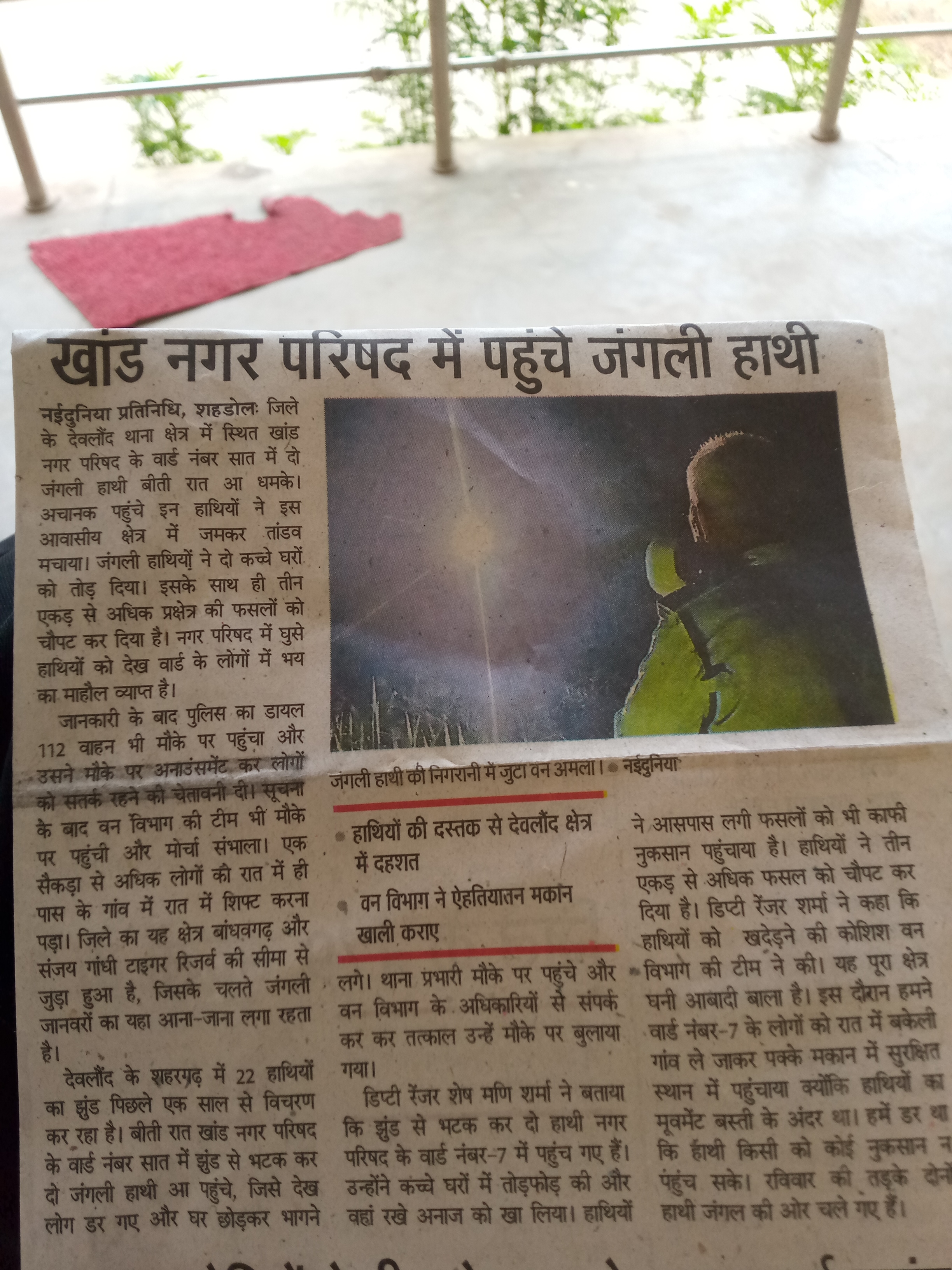 शहडोल: जिले के देवलौद थाना क्षेत्रान्तर्गत स्थित खांड नगर परिषद के वार्ड नं 07 मे 2 जंगली हाथी बीती रात आ धमके ।अचानक पहुचे इन हाथियों ने जमकर तांडव मचाया की घर तोड़ दिया ।नगर परिषद में घुसे हाथियों को देख वार्ड के लोगो मे भी का माहौल व्याप्त है ।