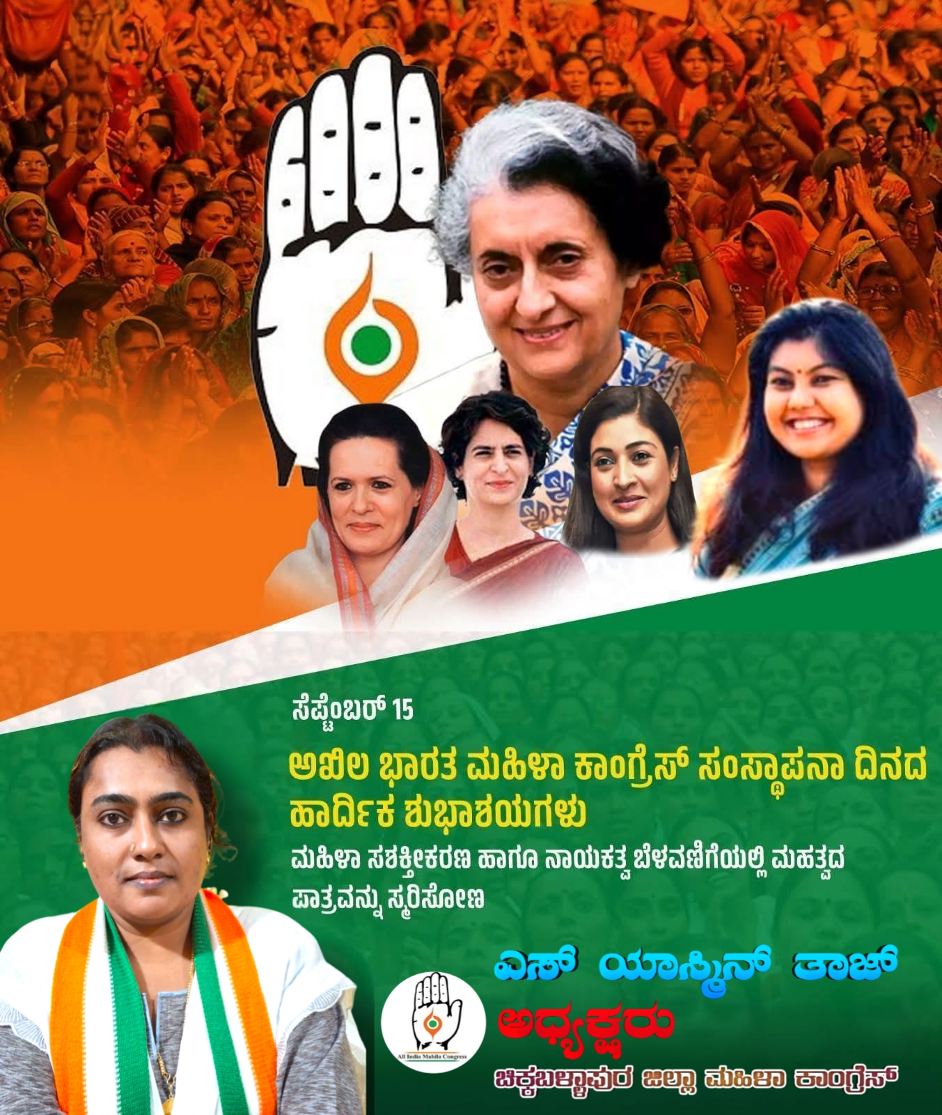 ಅಖಿಲ ಭಾರತ ಮಹಿಳಾ ಕಾಂಗ್ರೆಸ್ ಸಂಸ್ಥಾಪನಾ ದಿನದ ಸಂದರ್ಭದಲ್ಲಿ ಎಲ್ಲಾ ಪದಾಧಿಕಾರಿಗಳು ಮತ್ತು ಕಾರ್ಯಕರ್ತರಿಗೆ ಶುಭಾಶಯಗಳು.