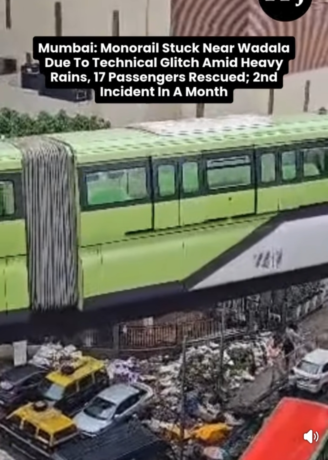 Monorail train stops on tracks in Mumbai due to technical snag; all 17 passengers rescued