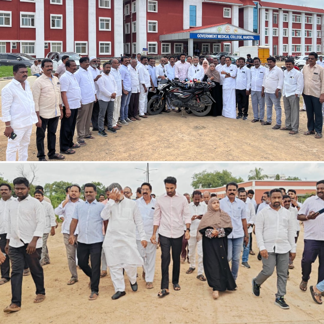 వైఎస్సార్సీపీ అధికారంలో మాజీ ముఖ్యమంత్రి జగన్ మోహన్ రెడ్డి రాష్ట్రంలో కొత్తగా 17 మెడికల్ కళాశాలను ఏర్పాటు చేసేందుకు ఆడుగులు వేసి అధికారంలో ఉన్న కాలంలోనే 5 మెడికల్ కళాశాలను సెప్టంబర్ నెల 15వ తేది 2023 సంవత్సరం అట్టహాసంగా ప్రారంభించి నేటికి సరిగ్గా రెండు సంవత్సరాలు కావస్తున్నది. దిగ్విజయంగా మూడవ సంవత్సరం మెడికల్ అడ్మిషన్ల ప్రక్రియను ప్రభుత్వం చేపడుతున్నది. ఇది వాస్తవం కాదా? ముఖ్యమంత్రి చంద్రబాబు నాయుడు గ్రాఫిక్స్ తో అమరావతిని సృష్టించినట్లు మాజీ మంత్రి వైఎస్ జగన్మోహన్ రెడ్డి రాష్ట్రంలో ఉన్న 5 మెడికల్ కళాశాలలను గ్రాఫిక్స్ చేయలేదని, ఇందుకు నిలువెత్తు సాక్షాలుగా నంద్యాల మెడికల్ కళాశాల ఉందని ఇది వాస్తవమని నిజాలు చారిత్రక నిర్మాణాలు కూటమి ప్రభుత్వానికి రాష్ట్ర హోం మంత్రి వంగలపూడి అనిత కళ్లకు కనిపించలేదా అని నంద్యాల మాజీ ఎమ్మెల్యే శిల్పా రవిచంద్రకిషోర్ రెడ్డి, ఎమ్మెల్సీ ఇసాక్ బాష హోమంత్రి చేసిన అసత్యపు ప్రచారంపై తీవ్రంగా మండిపడ్డారు. ఈ మేరకు వాస్తవాలను, నిజానిజాలను ప్రజలకు కూటమి ప్రభుత్వ నేతలకు తెలియజేసేందుకు సోమవారం నంద్యాల ప్రభుత్వ మెడికల్ కళాశాల ప్రాగణంలో కళాశాల ఎదురుగా మీడియా సమావేశం నిర్వహించి నిజాలను నిగ్గు తెల్చారు మాజీ ఎమ్మెల్యే శిల్పా రవిరెడ్డి, ఎమ్మెల్సీ ఇసాక్ బాష.