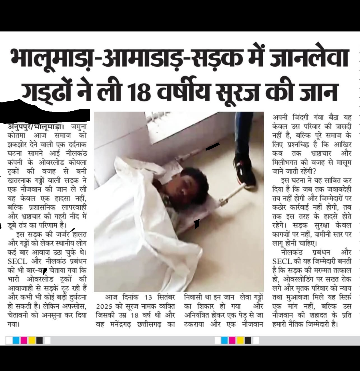 भालूमाड़ा-आमाडाड़-सड़क में जानलेवा गड्ढों ने ली 18 वर्षीय सूरज की जान