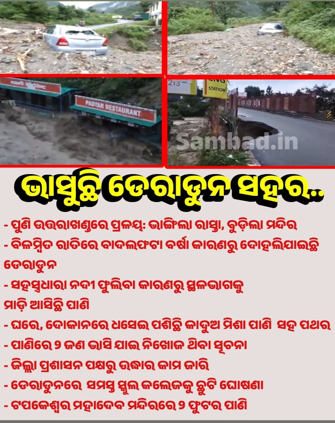 ଡେରାଡୁନ ସହର ବର୍ଷା ପାଣିରେ ବେହାଲ