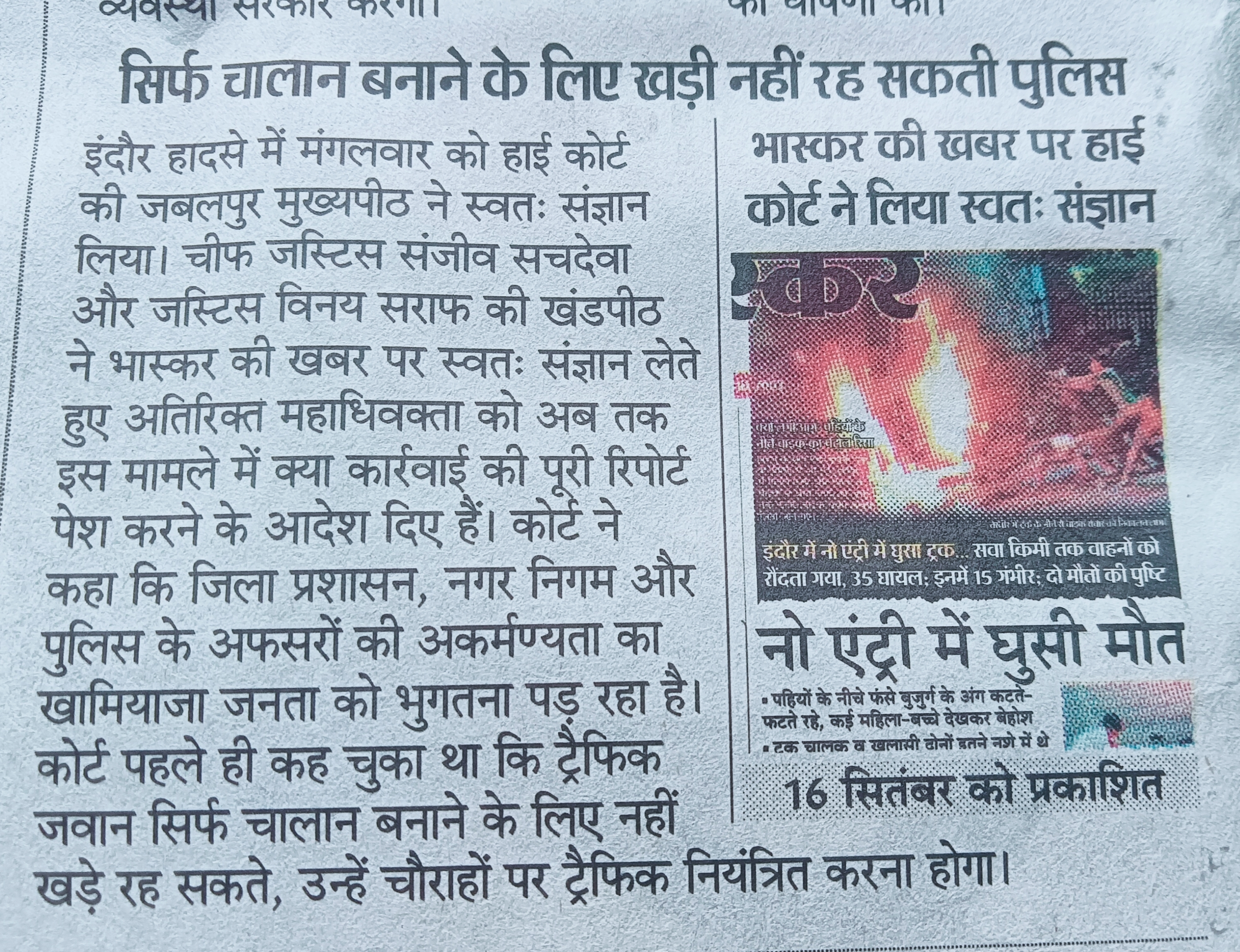 इंदौर के हादसों से प्रशासन जागा, अब उन्होंने हाई कोर्ट ने माना कि पुलिस सिर्फ चालान काटती है ना की पार्किंग की व्यवस्था और ट्रैफिक को भी सुधारते है .
