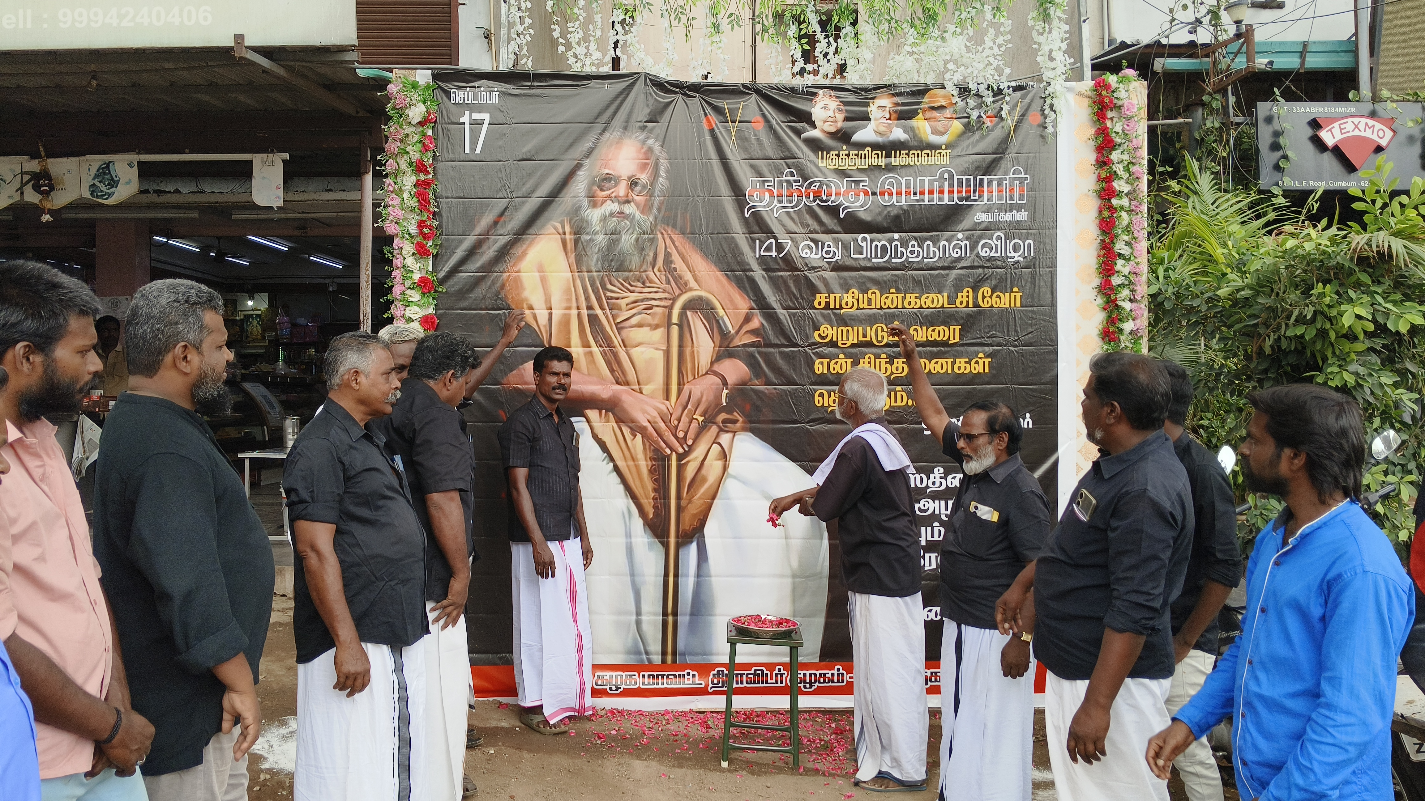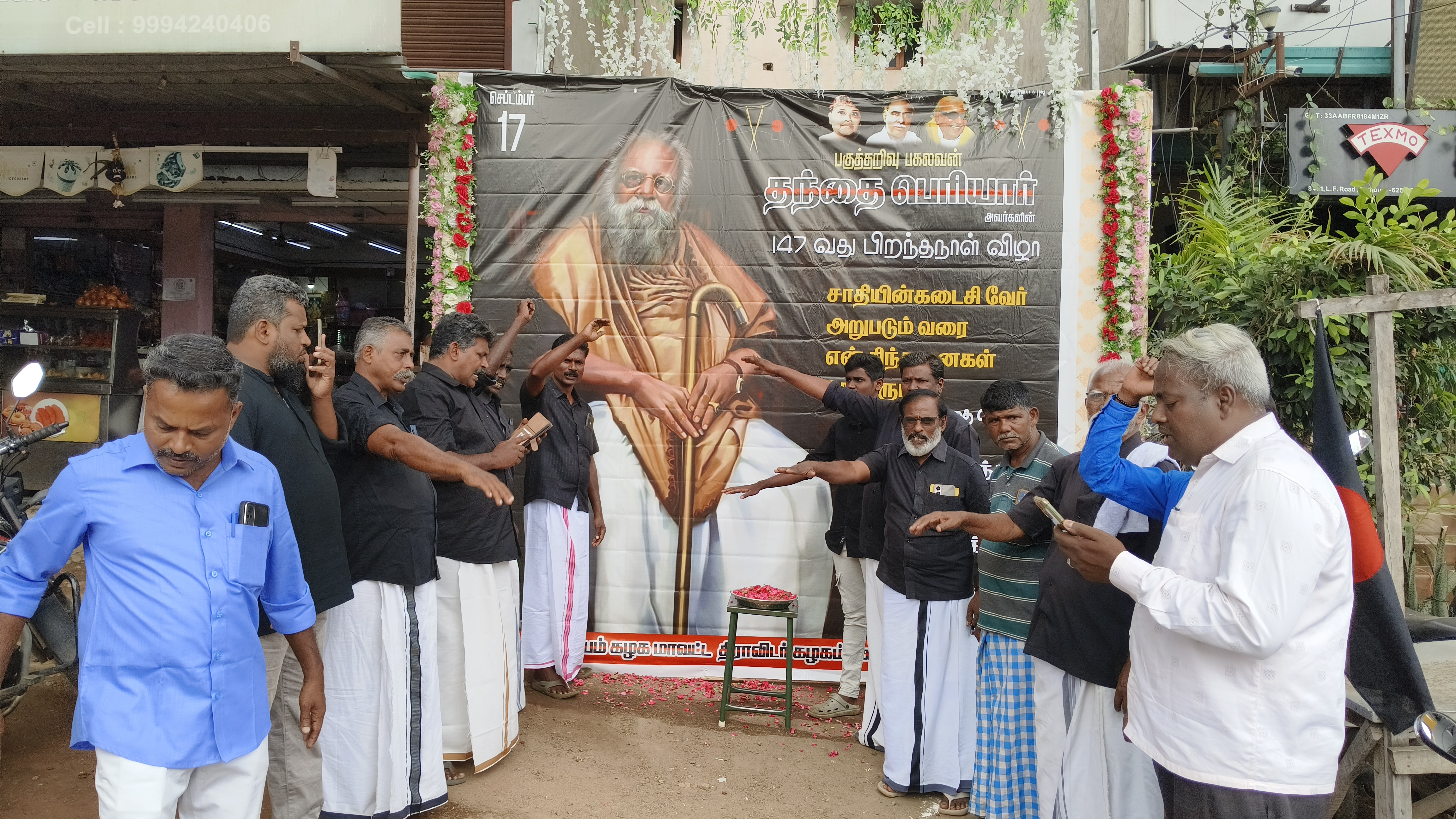 தேனி மாவட்டம் கம்பத்தில், திராவிடர் கழகம் சார்பில் தந்தை பெரியார் பிறந்த நாள் சமூக நீதி நாள்