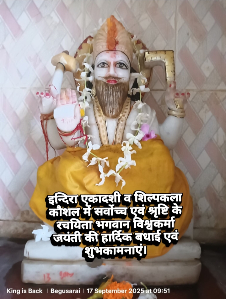 इन्दिरा एकादशी व शिल्पकला कौशल में सर्वोच्च एवं श्रृष्टि के रचयिता भगवान विश्वकर्मा जयंती की हार्दिक बधाई एवं शुभकामनाएं।