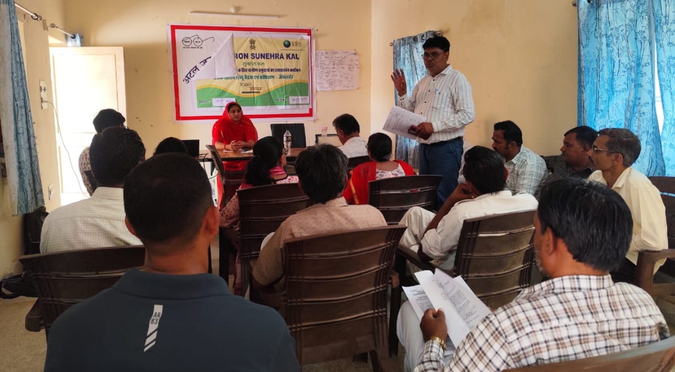मोहनगढ़ - जिला परिषद जैसलमेर, आईटीसी मिशन सुनहरा कल एवं फाउंडेशन फॉर इकोलॉजिकल सिक्योरिटी (FES) के सहयोग से पंचायत समिति मोहनगढ़ में एक दिवसीय ब्लॉक स्तरीय समीक्षा बैठक एवं प्रशिक्षण कार्यक्रम आयोजित हुआ। बैठक की अध्यक्षता प्रधान कृष्णा चौधरी ने की। प्रधान कृष्णा चौधरी ने कहा कि प्राकृतिक संसाधन प्रबंधन एवं पर्यावरण संरक्षण को ध्यान में रखते हुए 2 अक्टूबर को होने वाली ग्राम सभाओं में अधिक से अधिक चारागाह विकास कार्यों को नरेगा के माध्यम से शामिल करवाया जाए। साथ ही ग्राम पंचायत स्तर पर तालाब, नाड़ी, गोचर, नदी-नाले आदि सामूहिक भूमि जो राजस्व रिकॉर्ड में दर्ज नहीं हैं, उन्हें ग्राम सभा के प्रस्तावों के जरिए दर्ज कराने का आह्वान किया। कार्यक्रम में एफईएस के मघाराम कड़ेला ने ब्लॉक स्तर पर किए गए सामूहिक प्रयासों की जानकारी दी और परिसंपत्ति रजिस्टर में शामलात संसाधनों को दर्ज करने का प्रशिक्षण दिया। इसके साथ ही हरियालो राजस्थान अभियान के अंतर्गत पौधारोपण की स्थिति तथा अतिक्रमण हटाने से जुड़े पहलुओं पर भी चर्चा की गई। तकनीकी सहायक योगेश जयपाल ने नरेगा के तहत चारागाह विकास के विभिन्न पहलुओं और समिति स्तर पर किए जाने वाले कार्यों पर विस्तार से जानकारी दी। बैठक में सरपंच, ग्राम विकास अधिकारी एवं नरेगा तकनीकी सहायकों सहित अनेक जनप्रतिनिधि उपस्थित रहे।