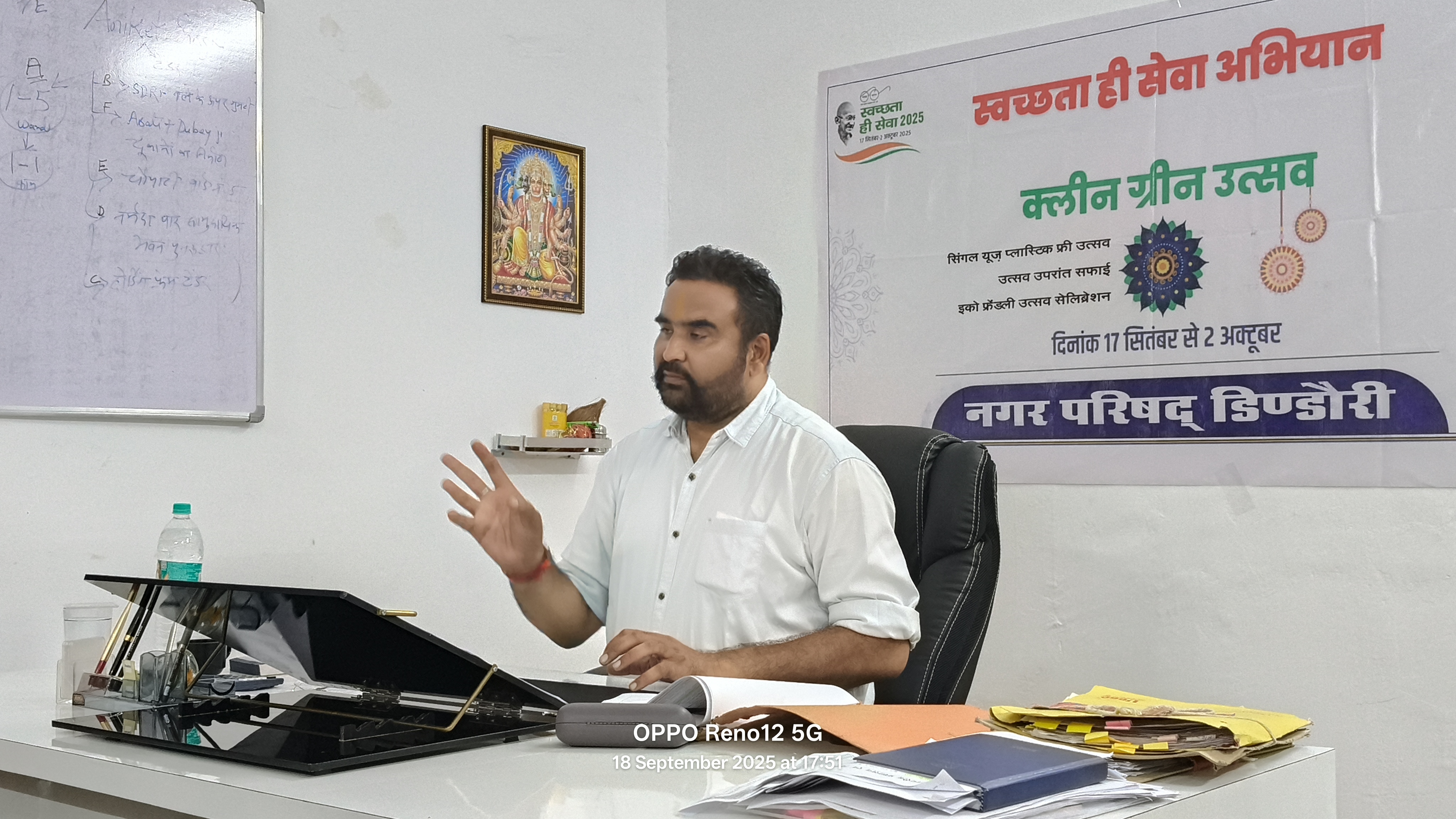 डिंडोरी -- विगत दिवस मुख्य नगर पालिका अधिकारी डिंडोरी अमित तिवारी ने बताया गया कि 17 सितम्बर से 2 अक्टूबर तक नगर परिषद डिंडोरी द्वारा स्वक्षता ही सेवा अभियान चलाया जा रहा है, जिसमे सिंगल यूज़ प्लास्टिक फ्री उत्सव, उत्सव उपरान्त सफाई, एवं इको फ्रेंडली उत्सव सेलिब्रेशन किया जाना है। और इसके लिये उन्होंने बकायदा गुरुवार के दिन नगर के प्रबुद्ध जनो व व्यापारी संगठन के पदाधिकारियों के साथ बैठक कर नगरीय क्षेत्र को पॉलीथिन मुक्त करने का आग्रह किया है।