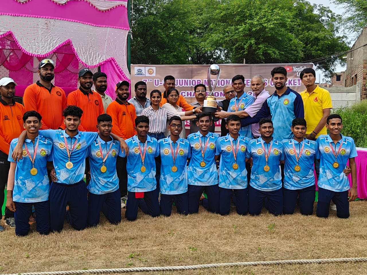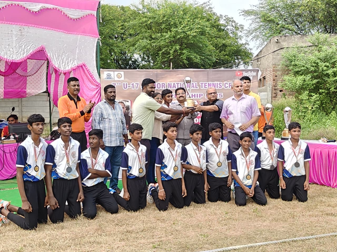 अलीगढ (उप्र )टेनिस क्रिकेट एसोसिएशन ऑफ़ इंडिया के तत्वाधान मे आयोजित 7th जूनियर नेशनल टेनिस क्रिकेट प्रतियोगिता दिंनाक 16 सितंबर से 19 सितम्बर 2025 तक मथुरा, उत्तर प्रदेश आयोजित किया गया। जिसमे आज अंतिम दिन के मैच खेले गए। आज पहला सेमीफाइनल महाराष्ट्र बनाम तेलंगाना के बीच खेला गया जिसमें तेलंगाना की टीम पहले बल्लेबाजी करते हुए केवल 35 रन ही बना सकी जिसे महाराष्ट्र की टीम ने बहुत ही आसानी के साथ केवल 3.2 ओवर में पूरा कर लिया एवं आज का दूसरा सेमीफाइनल झारखंड बनाम मुंबई के बीच खेला गया जिसमें पहले बल्लेबाजी करते हुए मुंबई ने 74 रनों का स्कोर खड़ा किया जिसमें झारखंड की ओर से गेंदबाजी करते हुए गोलू ने शानदार तीन विकेट लिए एवं राजन को दो विकेट मिला जवाबी पारी खेलने उतरी झारखंड की टीम निर्धारित ओवरों में मात्र 54 रन ही बना सकी। मुंबई की ओर से गेंदबाजी करते हुए सिद्धेश ने अपनी टीम के लिए शानदार तीन विकेट लिए एवं रोनित को दो विकेट मिला। फाइनल मुकाबले महाराष्ट्र बनाम मुंबई के बीच हुआ। जिसमें मुंबई की टीम ने पहले बल्लेबाजी करते हुए निर्धारित ओवरों में केवल 35 रन ही बना सकी महाराष्ट्र की ओर से गेंदबाजी करते हुए सिद्धेश ने अपनी टीम के लिए शानदार 6 विकेट लिए 35 रनों का पीछा करने उतरी महाराष्ट्र की टीम ने पांच विकेट के नुकसान पर बहुत ही आसानी से अपने लक्ष्य को प्राप्त किया।सर्वश्रेष्ठ बल्लेबाज का किताब मुंबई के आदित्य को दिया गया, सर्वश्रेष्ठ गेंदवाज का किताब महाराष्ट्र के सिद्धेश को दिया गया। टूर्नामेंट ऑफ द सीरीज का किताब महाराष्ट्र के सिद्धेश को मिला।इस तरह आज मथुरा के इस पावन धरती पर सातवां जूनियर नेशनल अंडर 17 चैंपियनशिप का समापन हुआ।