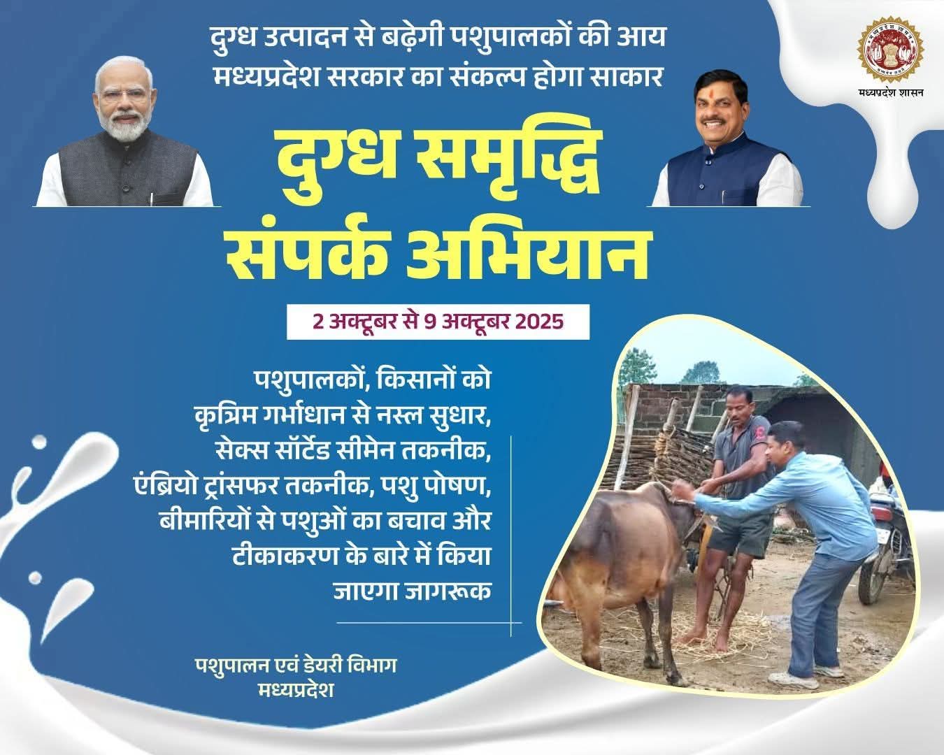 दुग्ध समृद्धि संपर्क अभियान के तहत आज जिला पंचायत धार में जिले के समस्त गौ सेवक एवं मैत्री का एक दिवसीय प्रशिक्षण संपन्न हुआ। कार्यक्रम में जिला उपसंचालक डॉक्टर राकेश सिंह सिसोदिया, ट्रेनर डॉक्टर राजू सर एवं विभाग के अनेक अधिकारी, कर्मचारी,एवं पशुपालन विभाग द्वारा प्रशिक्षित मैत्री कार्यकर्ता एवं गौ सेवक साथी उपस्थित रहे।। , उपसंचालक महोदय ने बताया कि मेत्री ओर गौसेवक विभाग का प्रमुख अंग हे मिलजुल कर विभाग के कार्यों को प्राथमिकता से सम्पन्न करना है प्रदेश में 2 अक्टूबर से 9 अक्टूबर तक दुग्ध समृद्धि संपर्क अभियान चलाया जाएगा जिसमें पशुपालकों को पशु पोषण , रखरखाव, टीकाकरण एवं पशु स्वास्थ्य संबंधित जानकारी प्रदान करना है।। अंत में आभार गौसेवक संघ के जिला अध्यक्ष सीताराम सोलंकी ने माना। जानकारी मीडिया प्रभारी सुनील धाकड़ राजोद द्वारा दी गई।।
