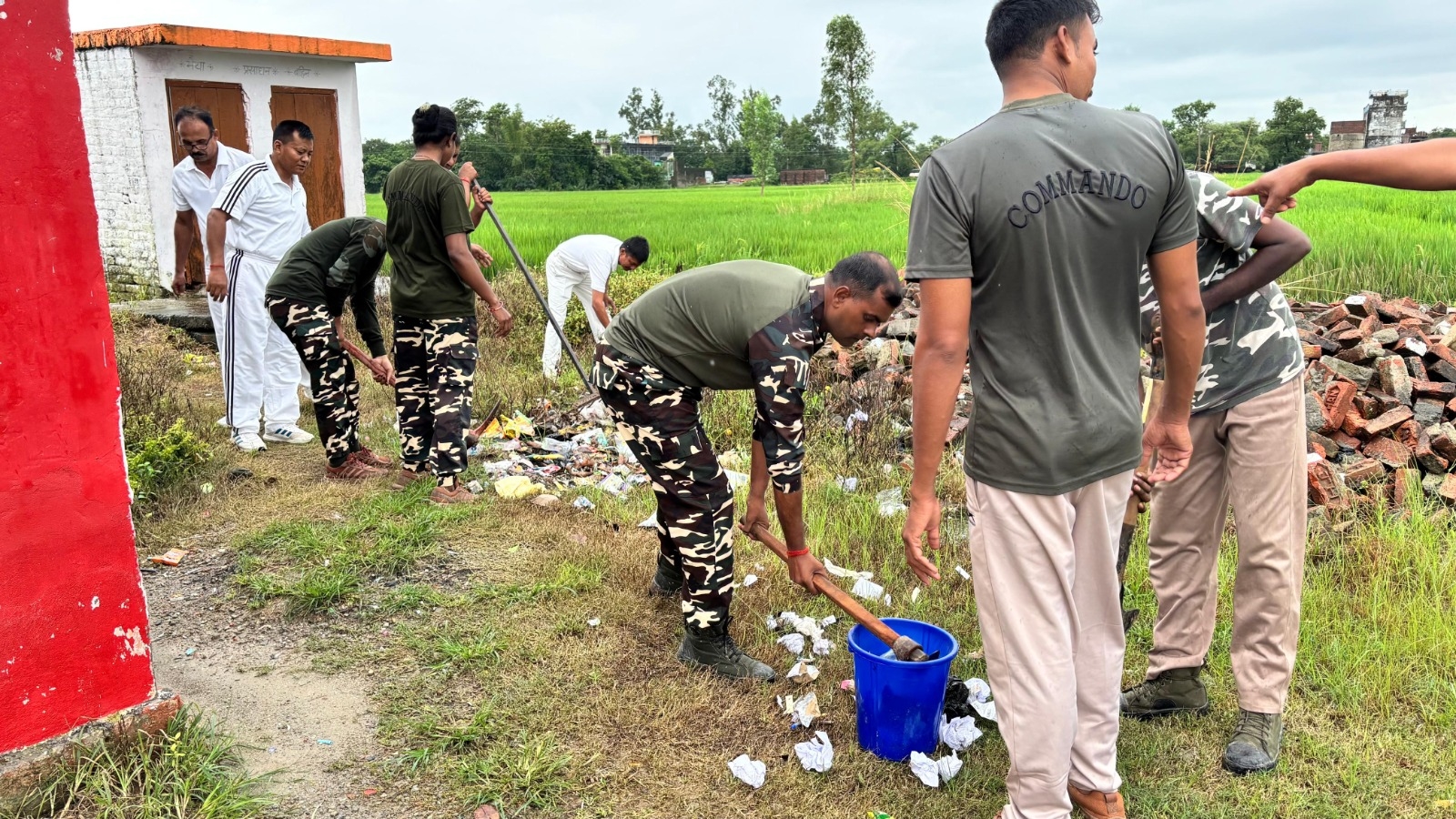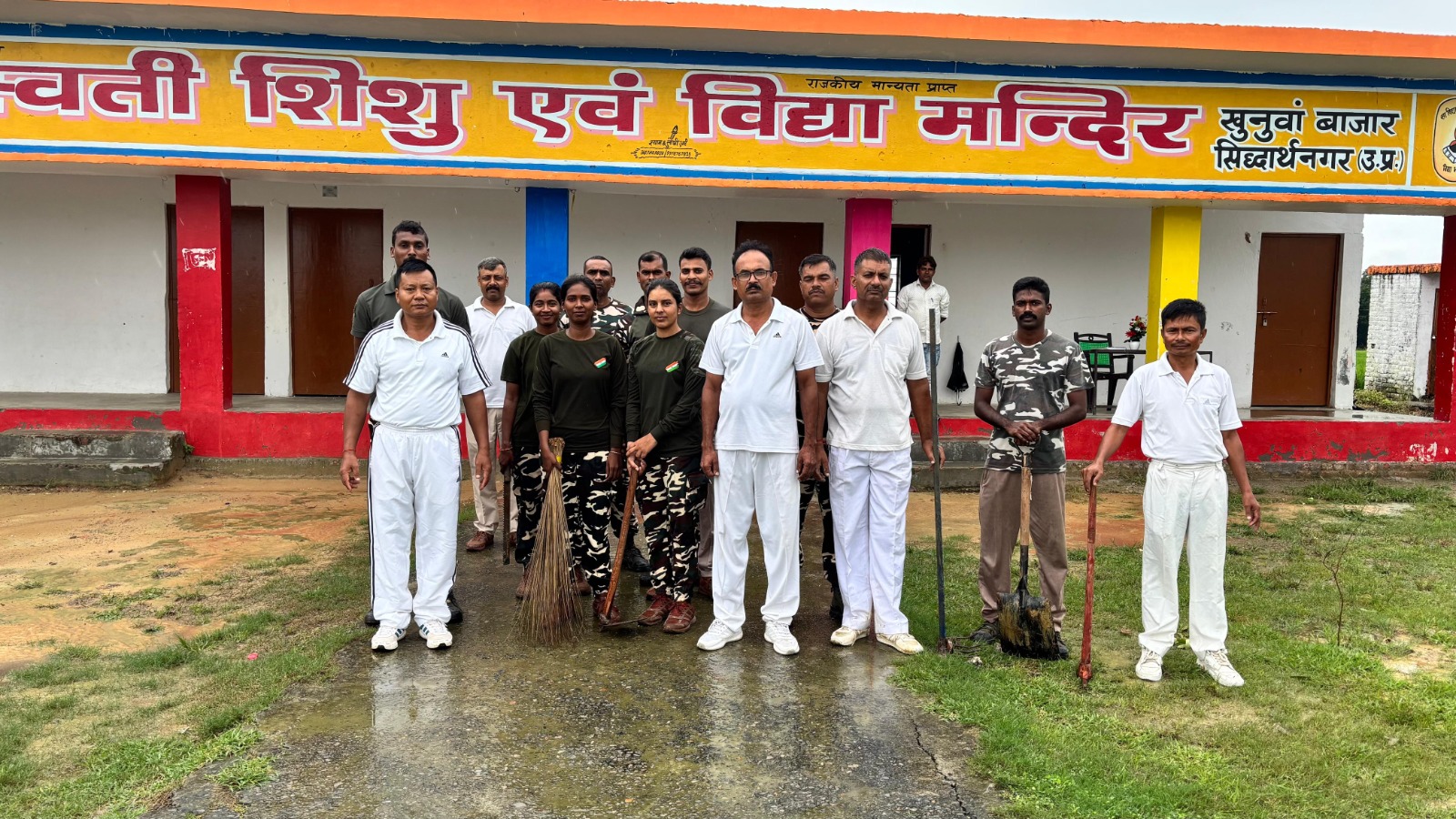 आज दिनांक 19.09.2025 को 43वी वाहिनी सशस्त्र सीमा बल सिद्धार्थनगर के सीमा चौकी खुनवा द्वारा सरस्वती शिशु एवं विद्या मंदिर में श्रम दान कर स्वच्छता ही सेवा अभियान चलाया गया I वाहिनी के सीमा चौकी खुनवा के कमांडर, श्री के. रनबीर सिंह, सहायक कमांडेंट द्वारा अवगत कराया गया कि जीवन में स्वच्छता से तात्पर्य स्वस्थ होने की अवस्था से भी है। स्वच्छता हमारे जीवन की गुणवत्ता को बढ़ाती है तथा यह हमारे जीवन का एक महत्वपूर्ण हिस्सा है। हमारे लिए अपने शरीर के साथ-साथ अपने आस-पास के क्षेत्र को भी स्वच्छ रखना बहुत जरूरी है I भारत सरकार द्वारा स्वच्छ भारत मिशन के अंतर्गत कई योजनाएं शामिल की गई है, जिसमें ग्रामीणों के घरों में शौचालाय का उपयोग प्रमुख हैं I