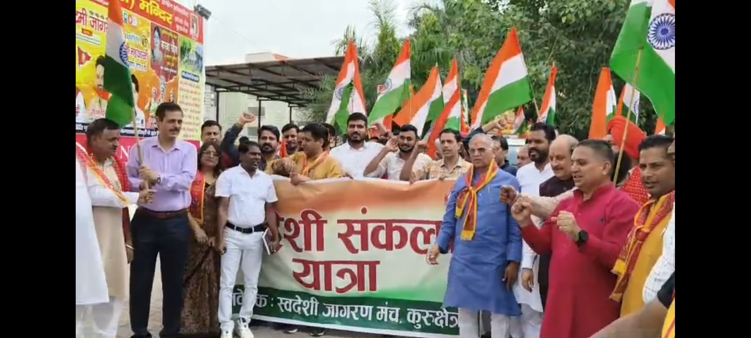 देवीकूप भद्रकाली मंदिर से मुख्यातिथियों ने तिरंगा फहराकर स्वदेशी संकल्प यात्रा को रवाना किया भद्रकाली चौक से हर्षवर्धन का टीला से होते हुए जांगड़ा सभा में यात्रा का स्वागत हुआ, पांचाल सभा बाल्मीकि सभा, गुज्जर समाज सभा , कशयप समाज सभा, जाट समाज सभा ,बैरागी सभा, सैनी समाज सभा के बाद जोगी समाज सभा के पदाधिकारियों ने यात्रा का स्वागत किया और स्वदेशी का संकल्प लिया।