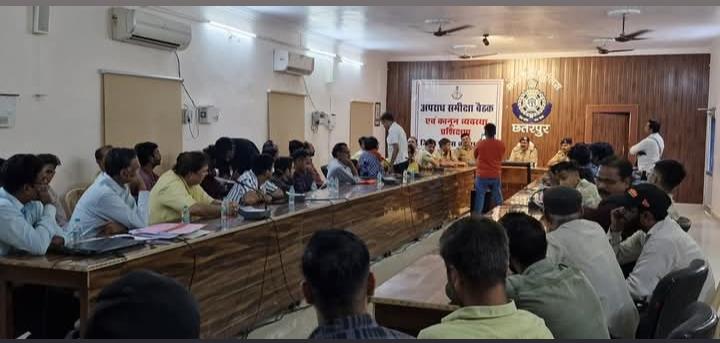 आगामी नवरात्रि पर्व, गरबा महोत्सव, पंडाल व्यवस्था एवं अन्य कार्यक्रमों के शांतिपूर्ण आयोजन हेतु आज छतरपुर मुख्यालय अंतर्गत पुलिस कॉन्फ्रेंस हॉल, पुलिस लाइन छतरपुर में शांति समिति की बैठक आयोजित की गई।
