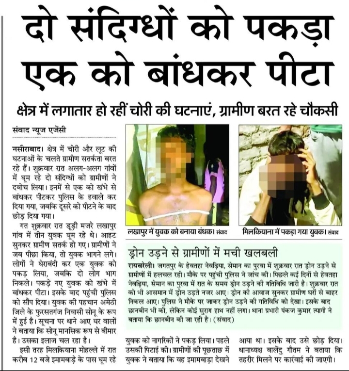 दो संदिग्धों को पकड़ा एक को बांधकर पीटा