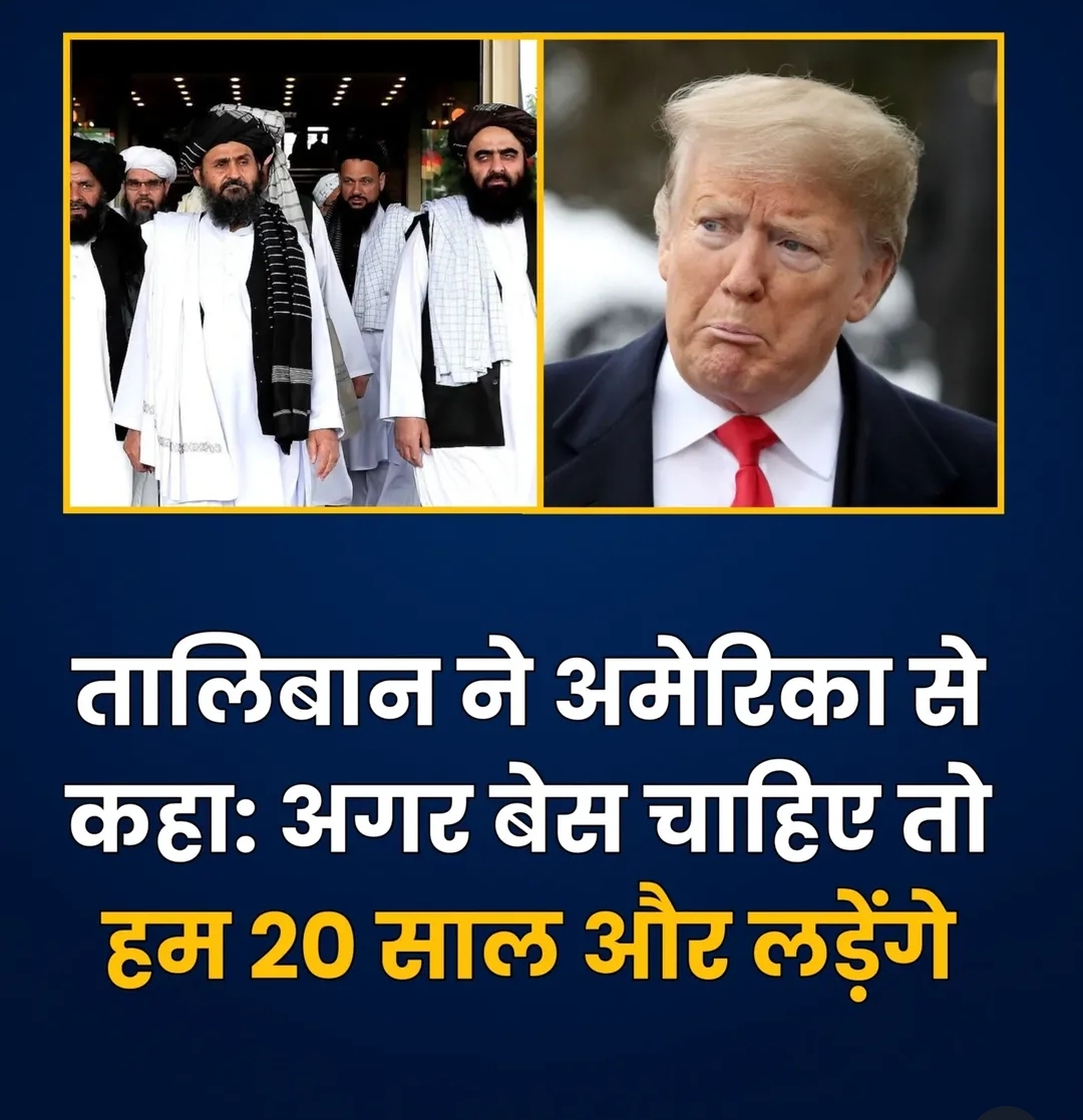 अफ़ग़ान रक्षा मंत्री मोहम्मद याकूब मुजाहिद ने कहा कि अगर अमेरिका बेस चाहता है, तो अफ़ग़ानिस्तान 20 साल तक लड़ने के लिए तैयार है।