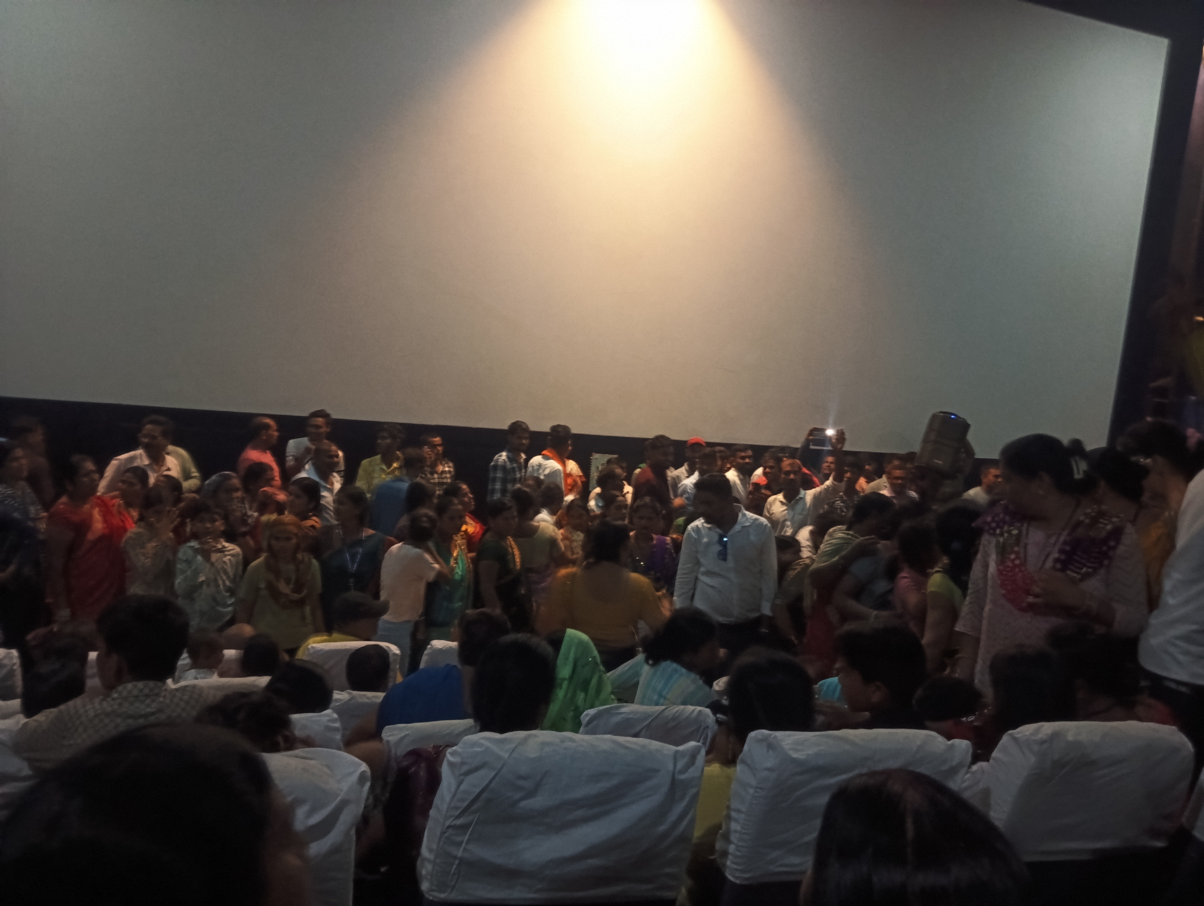 छत्तीसगढ़ की पहली ऐतिहासिक फिल्म बलिदानी राजा गुरु बालकदास देखने डीएल मल्टीप्लेक्स अकलतरा मे दर्शकों कि भारी भीड़