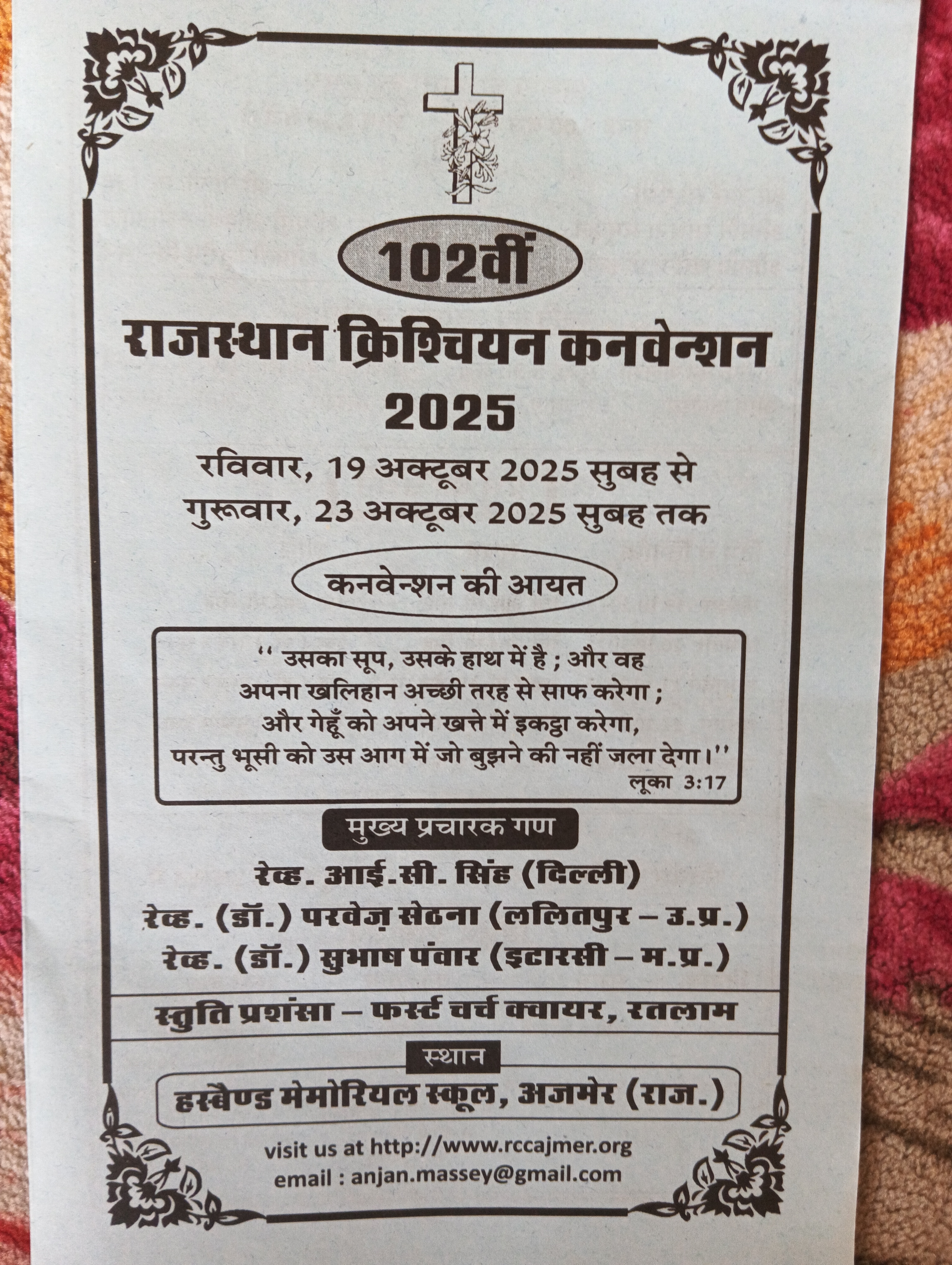 राजस्थान क्रिश्चियन कनवेन्शन 2025 अजमेर राजस्थान मे 19 अक्टूबर से शुरू