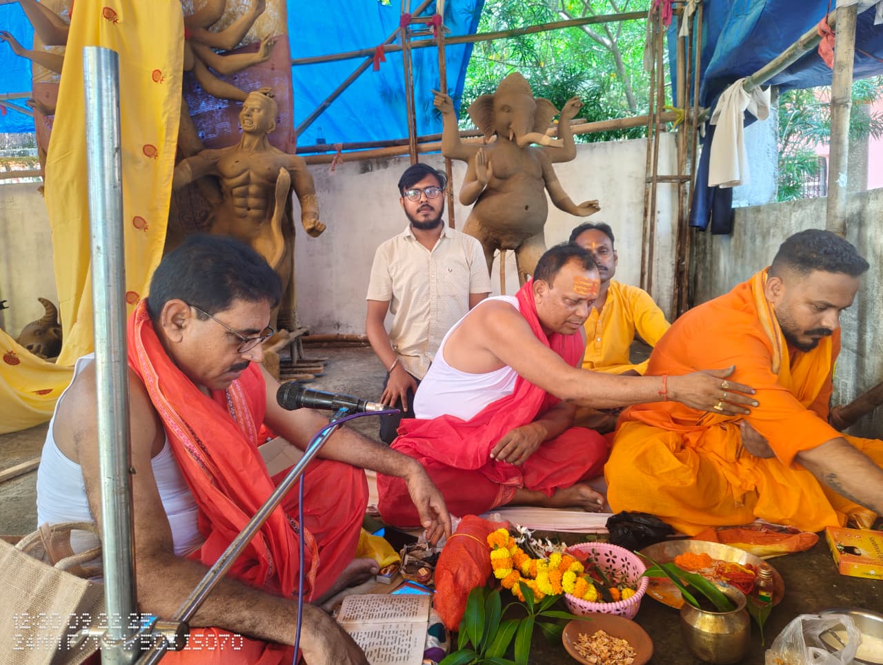 चंडीस्थान दुर्गा मंडप में कलश स्थापना
