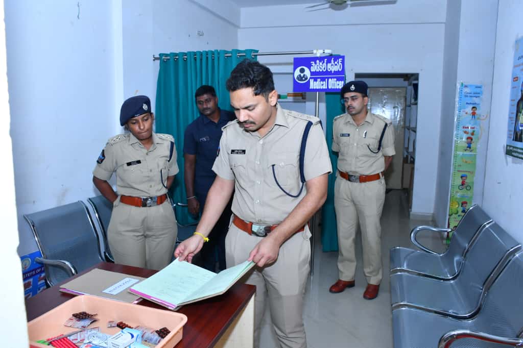 అనంతరం పోలీస్ క్వార్టర్స్ వద్ద గల పోలీస్ వెల్ఫేర్ హాస్పిటల్ ను సందర్శించి ఇక్కడ ఉన్న మందుల వివరాలు డాక్టర్ల పనితీరు మొదలగు వాటిపై అధికారులను అడిగి తెలుసుకున్నారు.
