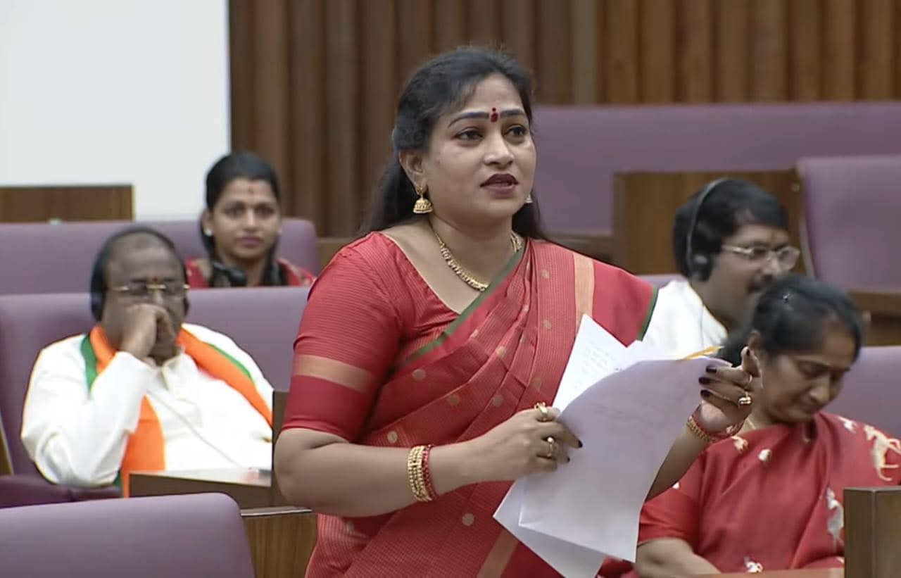 అసెంబ్లీ, శాసన మండలిలో కూటమి మహిళా మంత్రులు, ఎమ్మెల్యేలు, ఎమ్మెల్సీలు డ్రెస్ కోడ్ పాటిస్తున్నారు. దేవీ నవరాత్రులు సందర్భంగా కూటమి మహిళా నేతలు ఎర్ర దుస్తుల్లో అసెంబ్లీకి వచ్చారు. నవరాత్రుల సందర్భంగా రోజుకో కలర్ కోడ్ డ్రెస్‌తో అసెంబ్లీకి రావాలని మహిళా సభ్యులు నిర్ణయం తీసుకున్నారు. ఈ క్రమంలో గాయత్రీదేవి అలంకారం సందర్భంగా రెడ్ కలర్ కోడ్ దుస్తుల్లో కూటమి పార్టీల మహిళ సభ్యులు సభకు వచ్చారు. నేటి ఉదయం దుర్గమ్మ గుడికి వెళ్లిన కూటమి మహిళా నేతలు అమ్మవారిని దర్శించుకున్నారు. ఈ సందర్భంగా హోంమంత్రి వంగలపూడి అనిత మాట్లాడుతూ.. మన సంస్కృతి సంప్రదాయాలు గురించి మంచి సందేశం వెళ్లాలనే డ్రెస్ కోడ్ పాటిస్తున్నామని చెప్పారు. అందరు గాయత్రీ దేవి అలంకారానికి అనుగుణంగా రెడీ శారీస్‌తో వచ్చినట్లు తెలిపారు. రాష్ట్రాన్ని చల్లగా చూడాలని దుర్గమ్మను వేడుకున్నామన్నారు. దుర్గా నవరాత్రులు ఎంతో వైభవంగా జరుగుతున్నాయని తెలిపారు. ఎవరికీ ఎలాంటి లోటు లేకుండా ప్రభుత్వం చర్యలు తీసుకుంటోందని వెల్లడించారు. అందరికి హోం మంత్రి అనిత నవరాత్రి ఉత్సవాలు శుభాకాంక్షలు తెలిపారు.