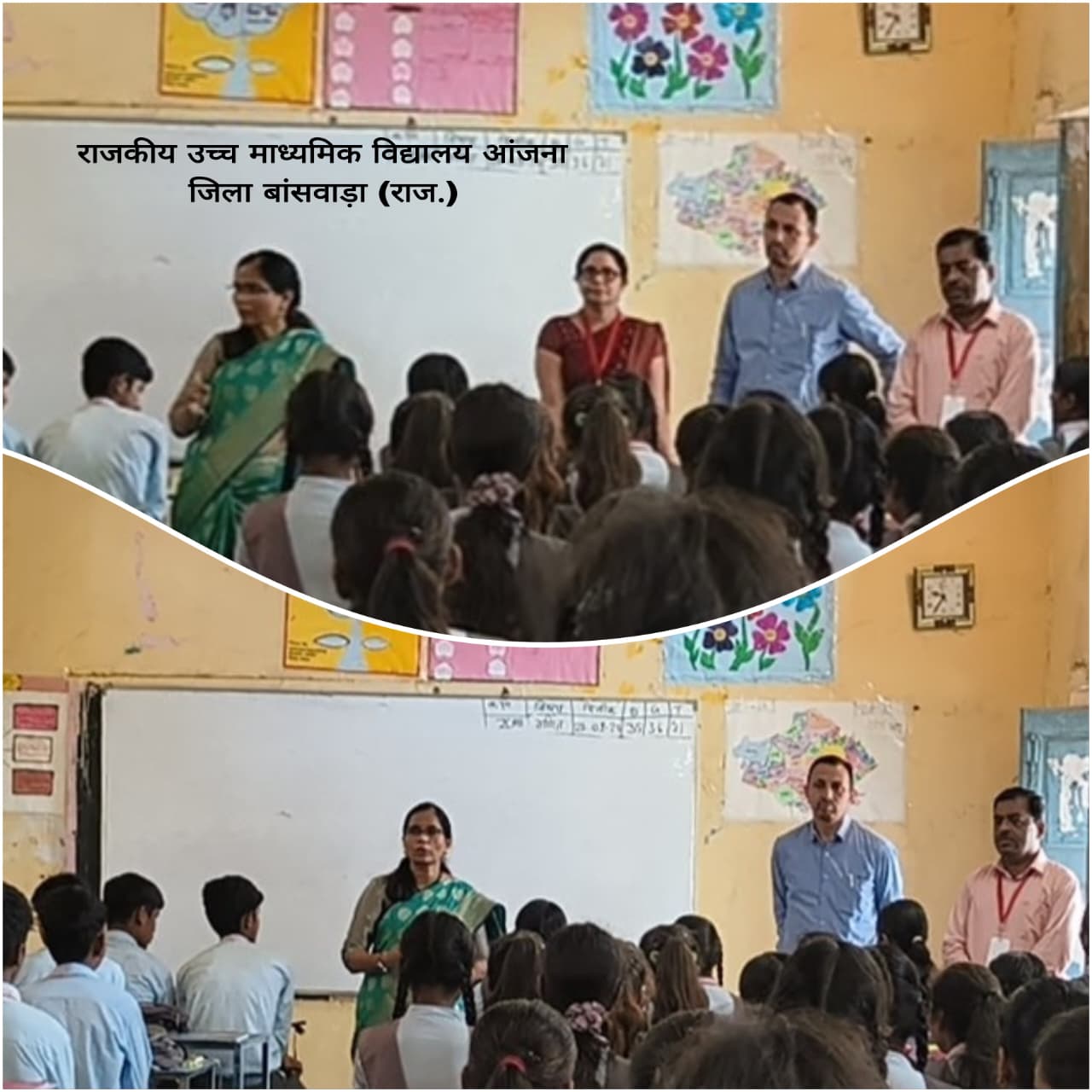 परतापुर : राजकीय उच्च माध्यमिक विद्यालय आंजना में मुख्य ब्लॉक शिक्षा अधिकारी माया सैमसन,अतिरिक्त ब्लॉक शिक्षा अधिकारी सुरेश पाटीदार एवं मनोज जैन ने सम्बलन के तहत "प्रखर राजस्थान 2.0" में कक्षा 3 से 5 व कक्षा 6 से 8में विद्यार्थियों का वर्गीकरण,साप्ताहिक योजना, एवं अभी तक की व कार्ययोजना की विस्तृत जानकारी प्राप्त की, प्राथमिक विद्यालय के विद्यार्थियों की कार्यपुस्तिका की जांच की,विद्यार्थियों की दैनंदिनी संधारण, विद्यार्थियों का गृहकार्य जांच ,शिक्षकों की दैनंदिनी की जांच कर संबलन प्रदान किया गया। मुख्य ब्लॉक शिक्षा अधिकारी , अतिरिक्त ब्लॉक शिक्षा अधिकारी ने कक्षा 10 व कक्षा 12के विद्यार्थियों को अध्यापन के लिए प्रेरणास्पद मार्गदर्शन प्रदान किया। तत्पश्चात आयोजित स्टॉफ बैठक में तीनों शिक्षा अधिकारियो का उप प्राचार्य कमलेश कुमार जैन ने शब्द सुमनों से स्वागत किया। मुख्य ब्लॉक शिक्षा अधिकारी ने सभी शिक्षक साथियों से विद्यार्थियों के सर्वांगीण विकास के साथ गुणात्मक शिक्षा पर ध्यान देने को कहा।इस अवसर पर राकेश पाटीदार,शशिकांत शुक्ला, प्रवीण टेलर, रीना जोशी,पुष्पा उपाध्याय,प्रगति भारद्वाज, चम्पा डामोर , शिल्पा जैन,हितेश पंड्या, मोहनलाल नायक, रमिला दोसी, मंजू डामोर, शंकर लाल यादव,ईश्वर सिंह गेहलोत , भुवनेश्वरी शर्मा ,हीना पाटीदार,जगदीश पाटीदार , कमलेश निनामा,संचालन एवं आभार अनिल पंड्या ने माना।