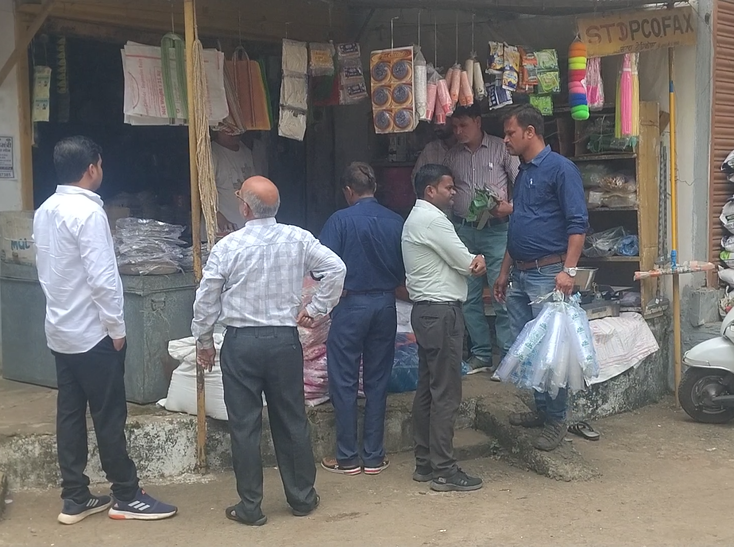 मुख्यालय डिंडोरी में सिंगल यूज प्लास्टिक पर प्रतिबंध पर की गई कार्रवाई