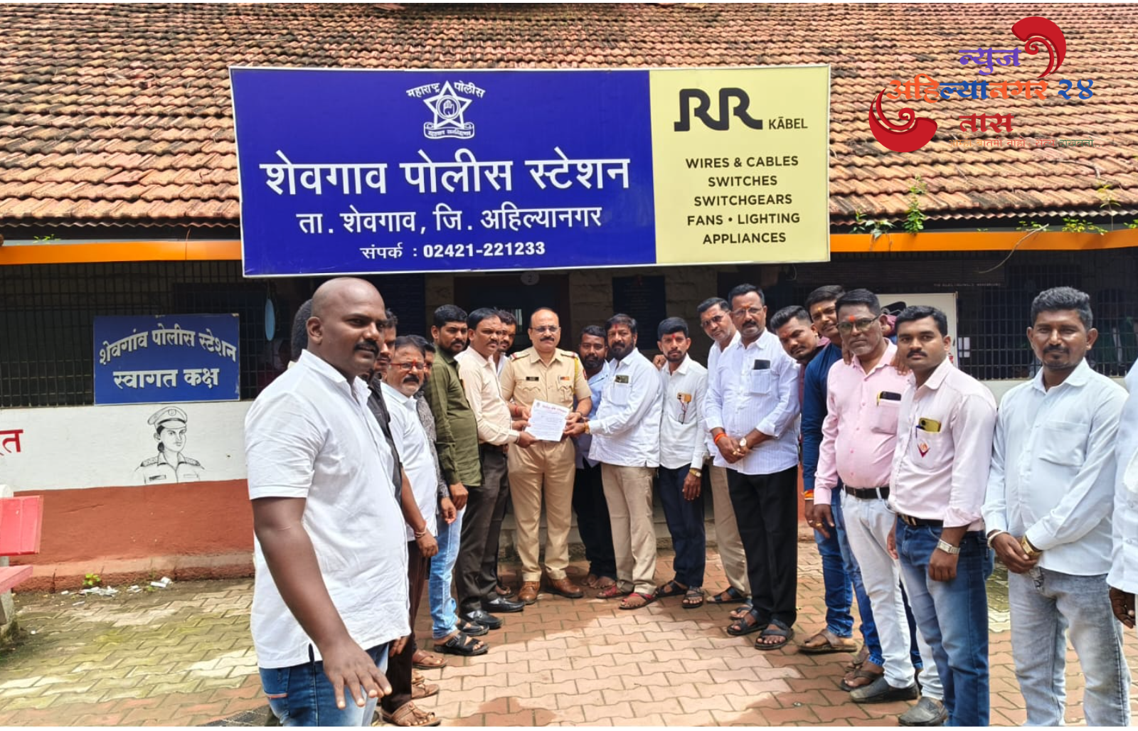 निवेदन देते वेळी प्रदीप गरड,कारवाई करण्या बाबत निवेदन देताना शेवगाव तालुका आदरणीय खासदार नीलेश लंके प्रतिष्ठानचे सर्व पदाधिकारी राहुल वरे, विश्वास घुटे सर, सोमनाथ भाऊ मोहिते, भागवत भाऊ शिंदे, छबुदादा मंडलिक, प्रदीप गरड, पोषण्णा कडमिंचे, बंडू काका रासने, वजीर भाई पठाण, सरपंच शंकर काटे, मोहसीन सय्यद,सुरेश लांडे, दिलीप सुपारे, गणेश साळवे, गणेश शहाणे, सुनील आहुजा, मुन्ना लाकडे, संपत भाऊ इसरवाडे, तात्यासाहेब घोरपडे, तात्यासाहेब डाके, बाळू भारस्कर, सिमोन घाडगे, व आदरणीय खासदार नीलेश लंके प्रतिष्ठान सर्व कार्यकर्ते व इतर कार्यकर्ते, उपस्थित होते.पोलिस निरीक्षक PI मुटकुळे साहेब यांनी सदर व्यक्ति वर लवकरात लवकर कारवाई करू असे आश्वासन दिले.