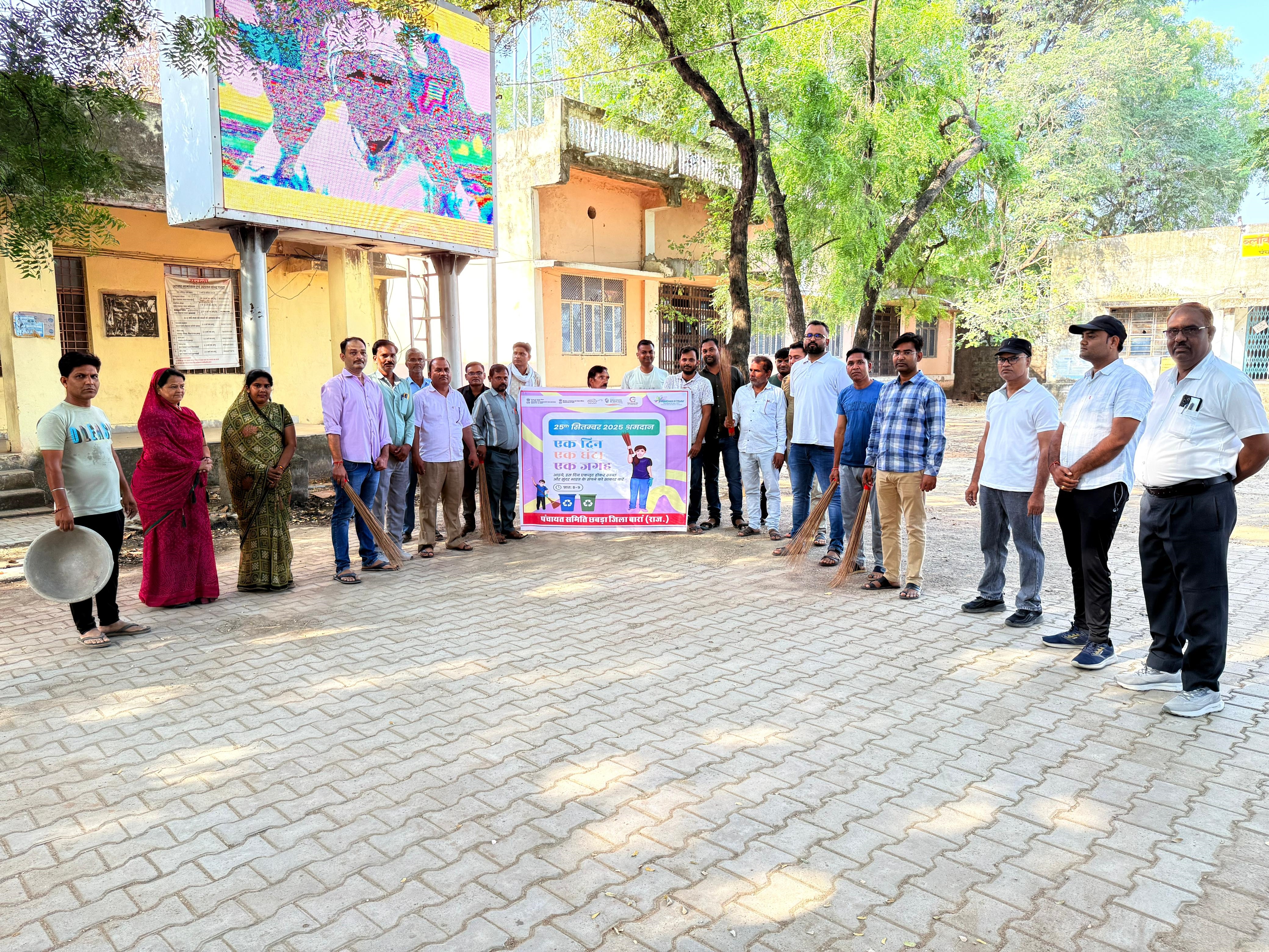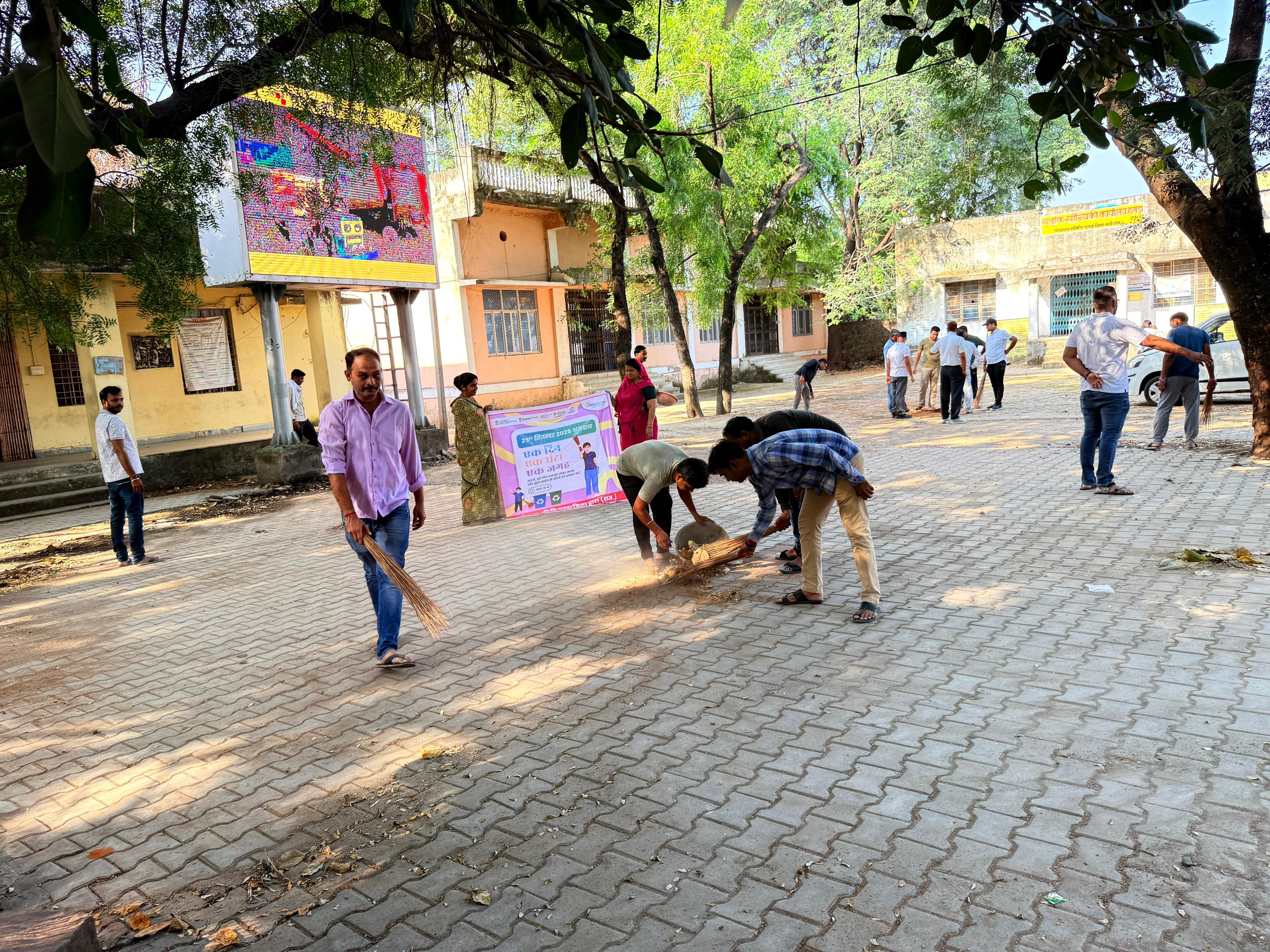 स्वच्छता ही सेवा 2025 के दौरान 25.08.2025 गुरूवार को प्रातः 8:00 बजे से 9:00 बजे तक एक घण्टे राष्ट्रव्यापी श्रमदान के तहत पंचायत समिति परिसर में माननीय प्रधान महोदय श्री हरिओम नागर व विकास अधिकारी श्री अभिषेक मीणा के नेतृत्व में समस्त पंचायत समिति अधिकारियों व कर्मचारियों द्वारा परिसर में झाडू लगाकर श्रमदान किया गया तथा स्वच्छता लक्ष्य ईकाई (CTU) चिन्हित स्थानों पर सामुहिक रूप से श्रमदान कर स्वच्छता की भागीदारी में सहयोग प्रदान किया गया। भारत सरकार एवं राज्य सरकार के निर्देशो कम में दिनांक 17.09.2025 से 02.10.2025 तक स्वच्छता ही सेवा अभियान 2025 चलाया जा रहा है यह अभियान स्वच्छोत्सव के रूप में मनाया जा रहा है जिसका उदेश्य सामुदायिक भागीदारी से स्वच्छता का बढावा देना है तथा अभियान के तहत 2 अक्टुबर तक प्रतिदिन स्वच्छता से सम्बन्धित सभी घटको पर कार्य किया जाकर स्वच्छता गतिविधियां की जानी है।