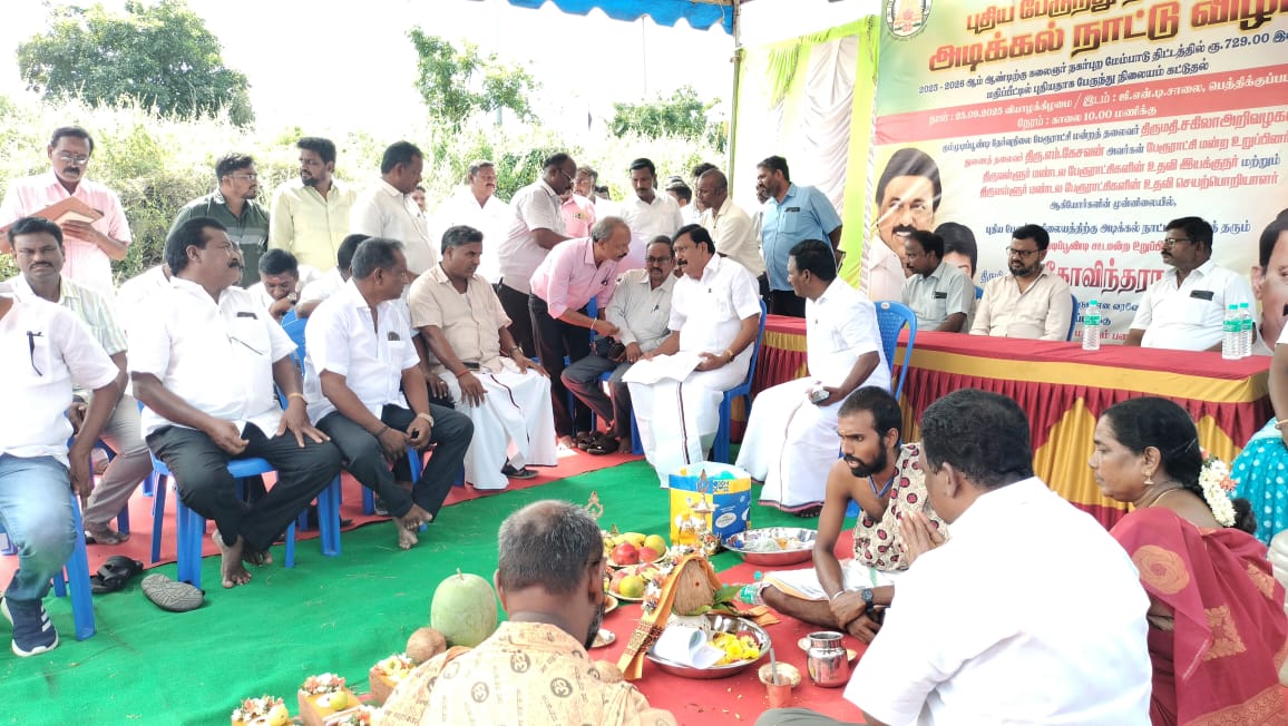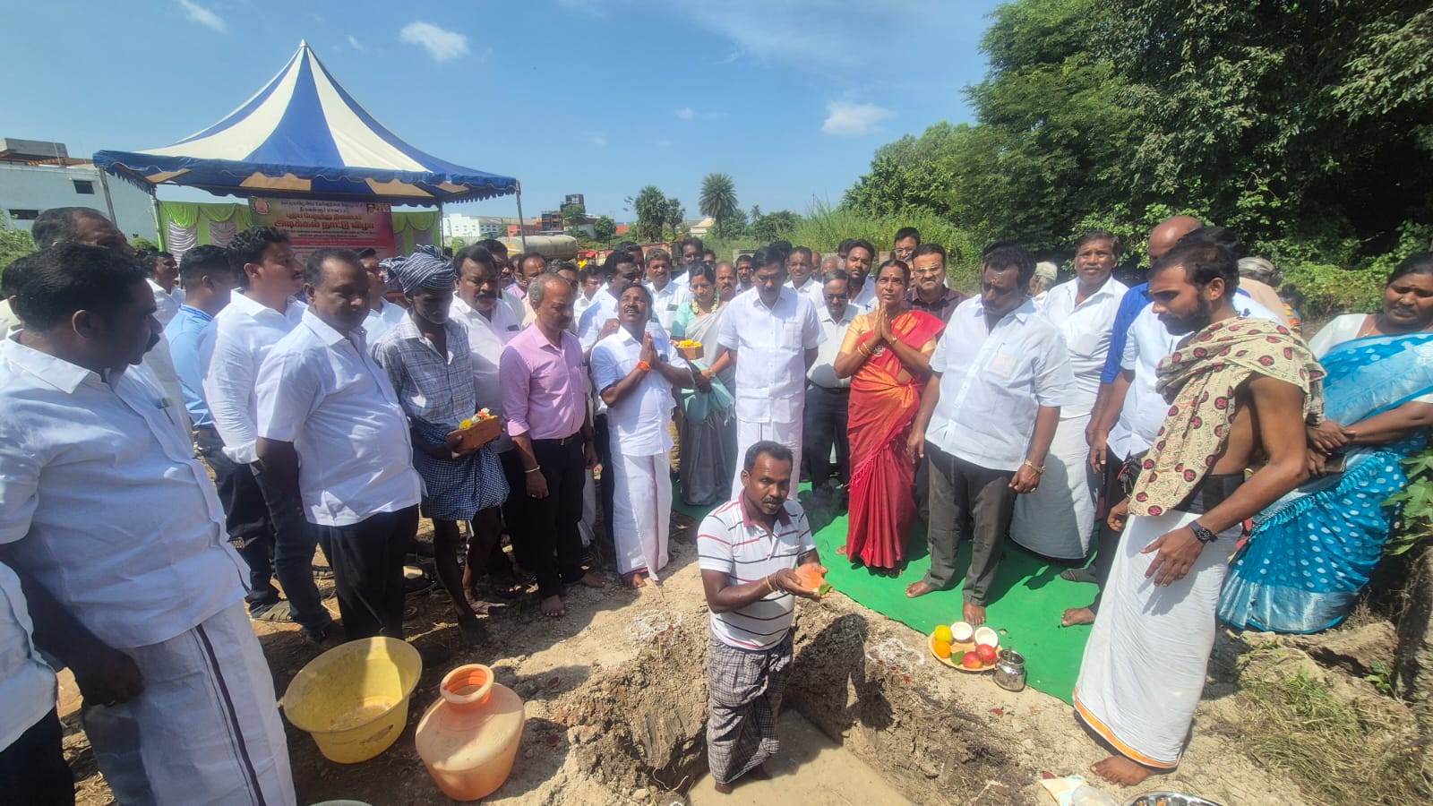 2025 2026 ஆம் ஆண்டிற்கான கலைஞர் நகர்புற மேம்பாட்டு திட்டத்திற்கு 7கோடியே 29 லட்சம் ரூபாய் மதிப்பீட்டில் புதிய பேருந்து நிலையம் கட்டுவதற்கான அடிக்கல் நாட்டு விழா கும்மிடிப்பூண்டி எம்எல்ஏ டி.ஜெ. கோவிந்தராஜன் தலைமையில் நடைபெற்றது.