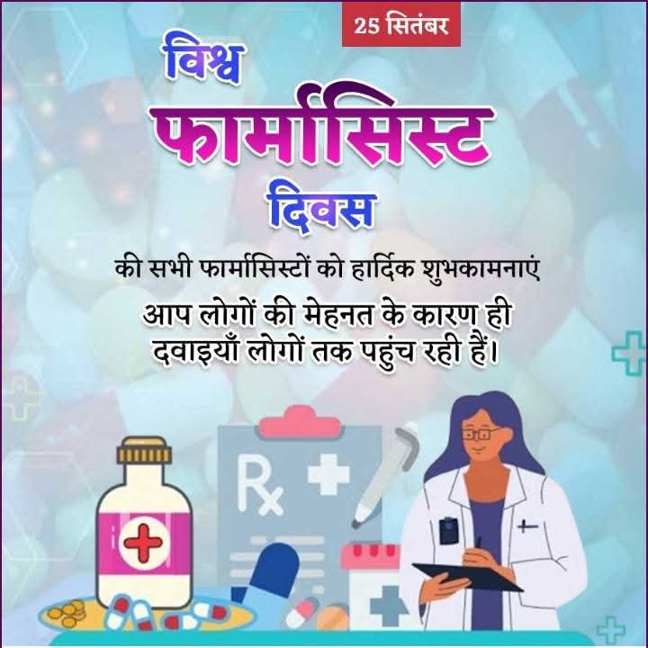 विश्व फार्मासिस्ट दिवस की सभी फार्मासिस्टों को हार्दिक शुभकामनाएं आप लोगों की मेहनत के कारण ही दवाइयाँ लोगों तक पहुंच रही हैं।