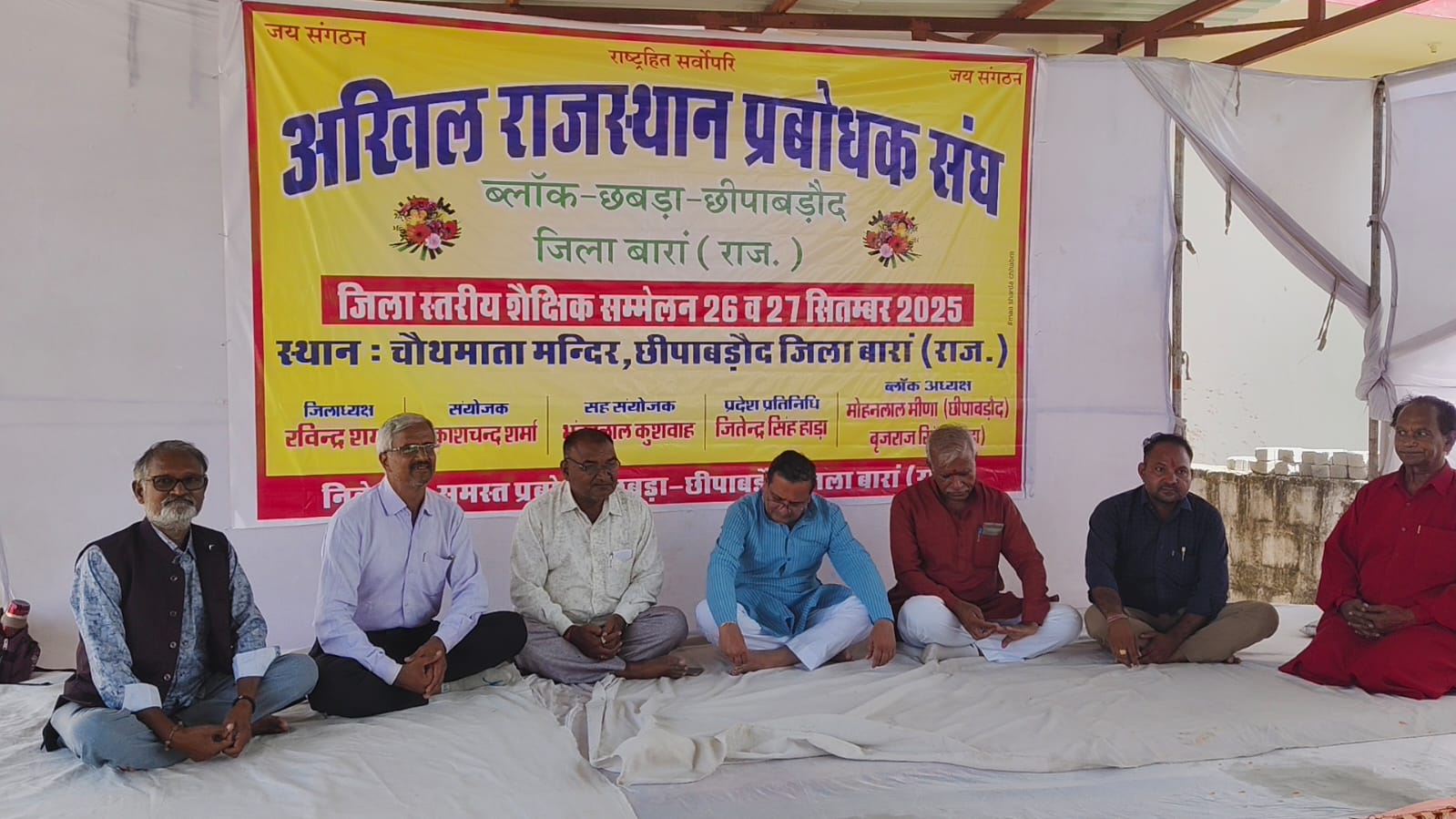 छीपाबड़ौद:शुक्रवार को अखिल राजस्थान प्रबोधक संघ का जिला स्तरीय शैक्षिक सम्मेलन 26 व 27 सितम्बर को चौथ माता मन्दिर,छीपाबड़ौद जिला बारां(राजस्थान) में शुक्रवार को हुआ प्रारम्भ।छबड़ा-छीपाबड़ौद के ब्लॉक अध्यक्ष मोहन लाल मीणा,बृजराज सिंह के अनुसार कार्यक्रम के मुख्य अतिथि विधायक प्रतिनिधि राजेश सिंघवी,विशिष्ठ अतिथि,सीबीईओ दिनेश कुमार भार्गव,चन्द्र प्रकाश शर्मा ढोलम,पत्रकार कुलदीप शर्मा,प्रधानाचार्य राकेश शर्मा,शिक्षा विद छीतर लाल गुर्जर,योगाचार्य जगदीश चन्द्र शर्मा,सेवा निवृत व्याख्याता,संदर्भ व्यक्ति एवं शिक्षाविद शंकर लाल नागर छबड़ा,अध्यक्षता शिव मनोहर भार्गव द्वारा की गयीं अतिविशिष्ट अतिथि के रूप में बृज गोविन्द टेलर अध्यक्ष राधा कृष्ण शिक्षा सहकारी समिति बारां,रविन्द्र शर्मा,जिला अध्यक्ष प्रबोधक संघ जिला-बारां,फूल चन्द गुर्जर,अध्यक्ष राष्ट्रीय शिक्षक संघ उप शाखा छीपाबड़ौद उपस्थित रहे।मंचासीन अतिथियों द्वारा मां सरस्वती को ज्ञान दीप जला कर प्रथम दिवस के कार्यक्रम की शुरुआत की गयीं,बालिकाओं ने सरस्वती वंदना ओर स्वागत गीत गाया।प्रबोधक संघ ब्लॉक छबड़ा-छीपाबड़ौद के कार्यकर्ताओं ने मंचासीन अतिथियों का तिलक,चन्दन,माल्यार्पण ओर पगड़ी बांध सम्मान किया गया।बीच-बीच में मनोरंजन के लिए गीत,भजन भी प्रस्तुत किए।वक्ताओं नें प्रबोधकों की समस्याओं को उजागर किया,मुख्य अतिथि राजेश सिंघवी ने अपने उदबोधन में कहा कि आपकी वाजिब मांगें विधायक महोदय के मार्फ़त राज्य सरकार के समक्ष उठाकर निदान कराया जावेगा।कार्यक्रम में बारां जिले के समस्त ब्लॉकों से प्रबोधक,शिक्षक उपस्थित हुए,प्रथम दिन शिक्षकों के मुद्दों पर गहन मंथन हुआ। जिले भर से आए प्रबोधक शिक्षकों ने भाग लिया और शिक्षा की गुणवत्ता,शिक्षकों के समक्ष चुनौतियों तथा लंबित मांगों पर गहन विचार-विमर्श किया गया,मंचासीन वक्ताओं नें प्रबोधकों द्वारा शिक्षा के क्षेत्र में दिए जा रहे योगदान की सराहना की और शिक्षा प्रणाली में उनके महत्व पूर्ण योगदान को रेखांकित किया।​अखिल राजस्थान प्रबोधक संघ के जिलाध्यक्ष रविन्द्र शर्मा ने संघ की वर्ष भर की गतिविधियों और प्रबोधकों के हितों के लिए किए गए प्रयासों की जानकारी दी।​शैक्षिक सत्र में,शिक्षकों ने नई शिक्षा नीति के क्रियान्वयन,शिक्षण नवाचारों और छात्रों के सर्वांगीण विकास पर अपने विचार साझा किए।सम्मेलन के दौरान सर्वसम्मति से विभिन्न प्रस्ताव पारित किए गए,जिनमें प्रबोधक शिक्षकों की लंबे समय से लंबित मांगें शामिल थीं। प्रमुख मांगों में जैसे-वेतन विसंगति को दूर करना और ग्रेड पे में सुधार,प्रबोधकों की नियमित पदोन्नति प्रक्रिया को गति देना।महत्वपूर्ण मांग, जैसे: