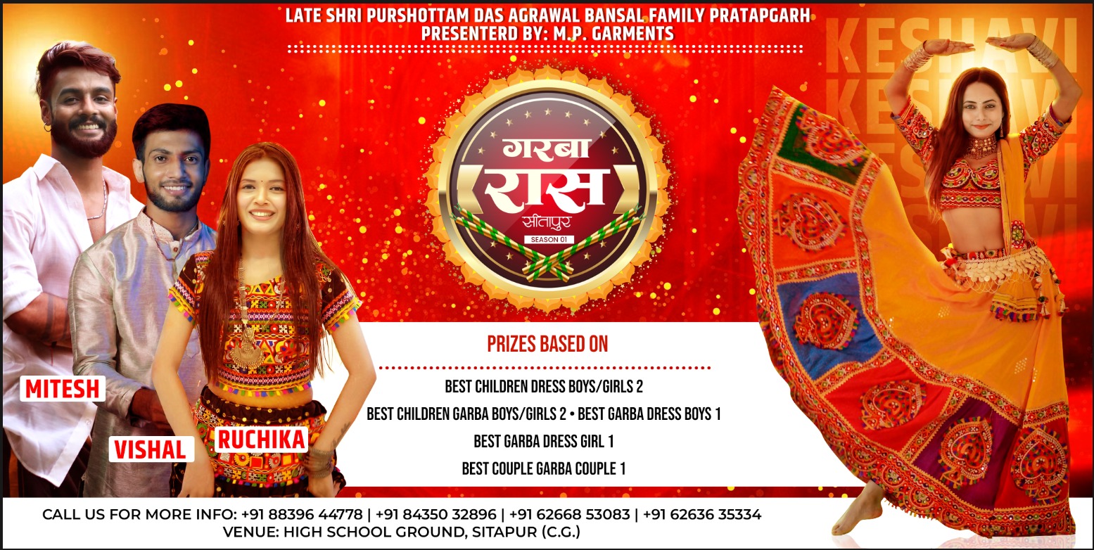 नवरात्रि के अवसर पर सीतापुर में सांस्कृतिक उत्सव गरबा रास सीजन-1 का आयोजन किया जा रहा है। यह भव्य कार्यक्रम 28 सितम्बर, रविवार को स्टेडियम ग्राउंड में होगा।