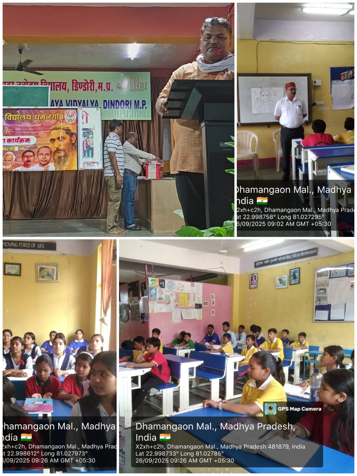 डिंडोरी। भारतीय संस्कृति धरोहर की गरिमा शालिनी देव सलिला पावन पुनीत मैकलसुता मां नर्मदा नदी के प्राकृतिक पावन तट पर स्थित उपनगरीय क्षेत्र में शिक्षा मंत्रालय भारत सरकार की स्वायत्त संस्थान नवोदय विद्यालय समिति क्षेत्रीय कार्यालय भोपाल मध्य प्रदेश के दिशा -निर्देशन और मार्गदर्शन में शिक्षाविद् प्राचार्य डॉ हर्ष प्रताप सिंह के कुशल नेतृत्व में पीएम श्री जवाहर नवोदय विद्यालय धमनगांव डिंडोरी (म.प्र.) में हिंदी पखवाड़ा कार्यक्रम के अन्तर्गत यंग राइटर युवा रचनाकारों के लेखन कौशल विकास के लिए विशिष्ट अतिथि वक्ता के रूप में मैकलसुता महाविद्यालय के शिक्षाविद प्राचार्य डॉक्टर बिहारी लाल द्विवेदी जी को आमंत्रित किया गया।