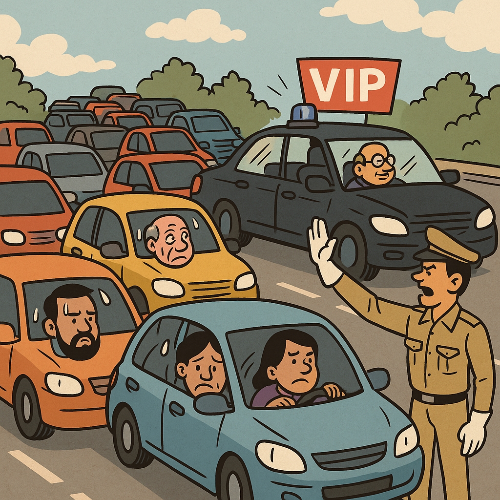 नागरिकों का कहना है कि जब भी कोई मंत्री, अधिकारी या VIP काफ़िला सड़क से गुजरता है, तो कुछ ही मिनटों में पूरा ट्रैफिक क्लियर कर दिया जाता है। इससे आम जनता को और भी गुस्सा आता है, क्योंकि उनकी समस्या का कोई हल नहीं निकाला जा रहा।