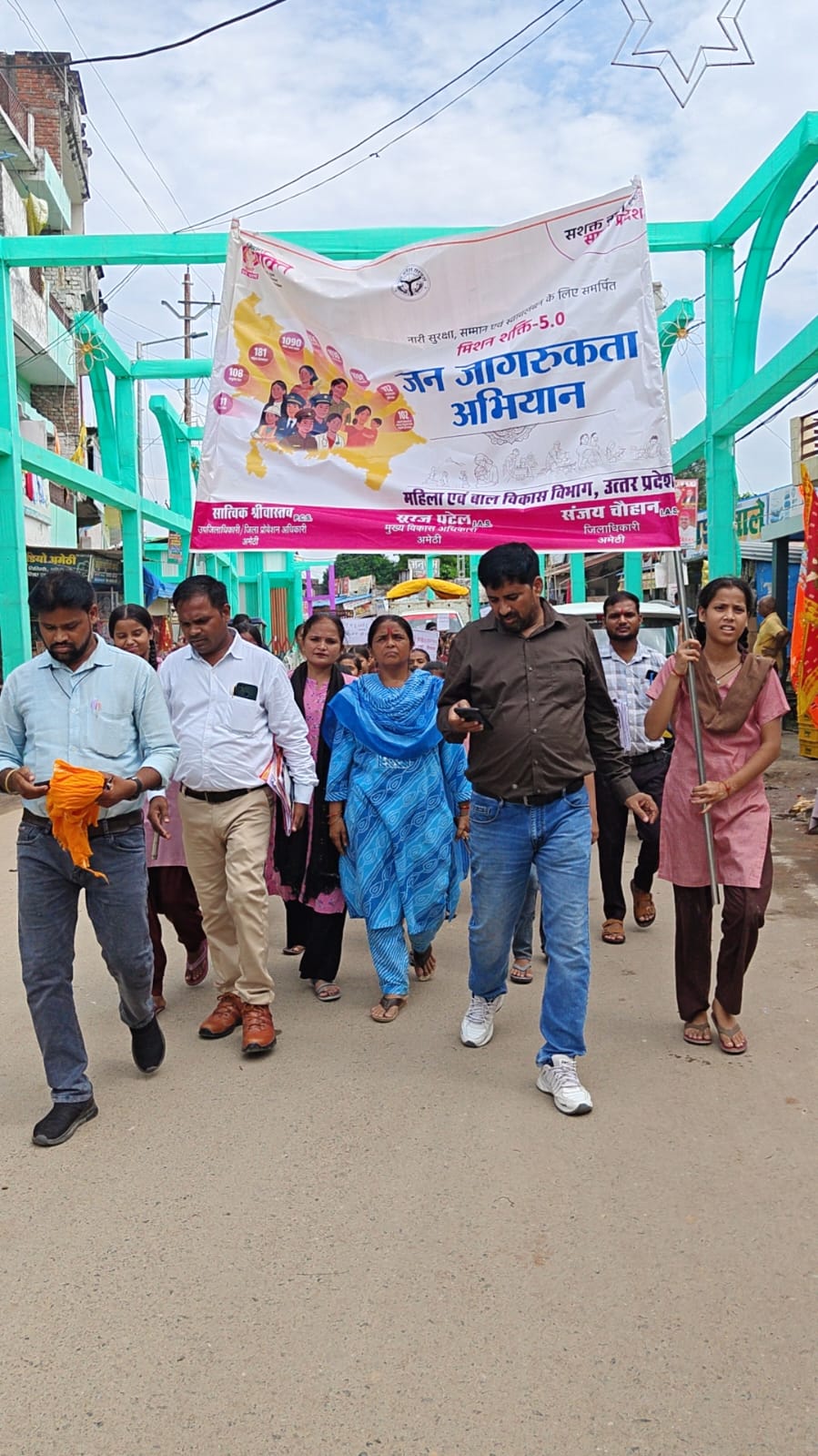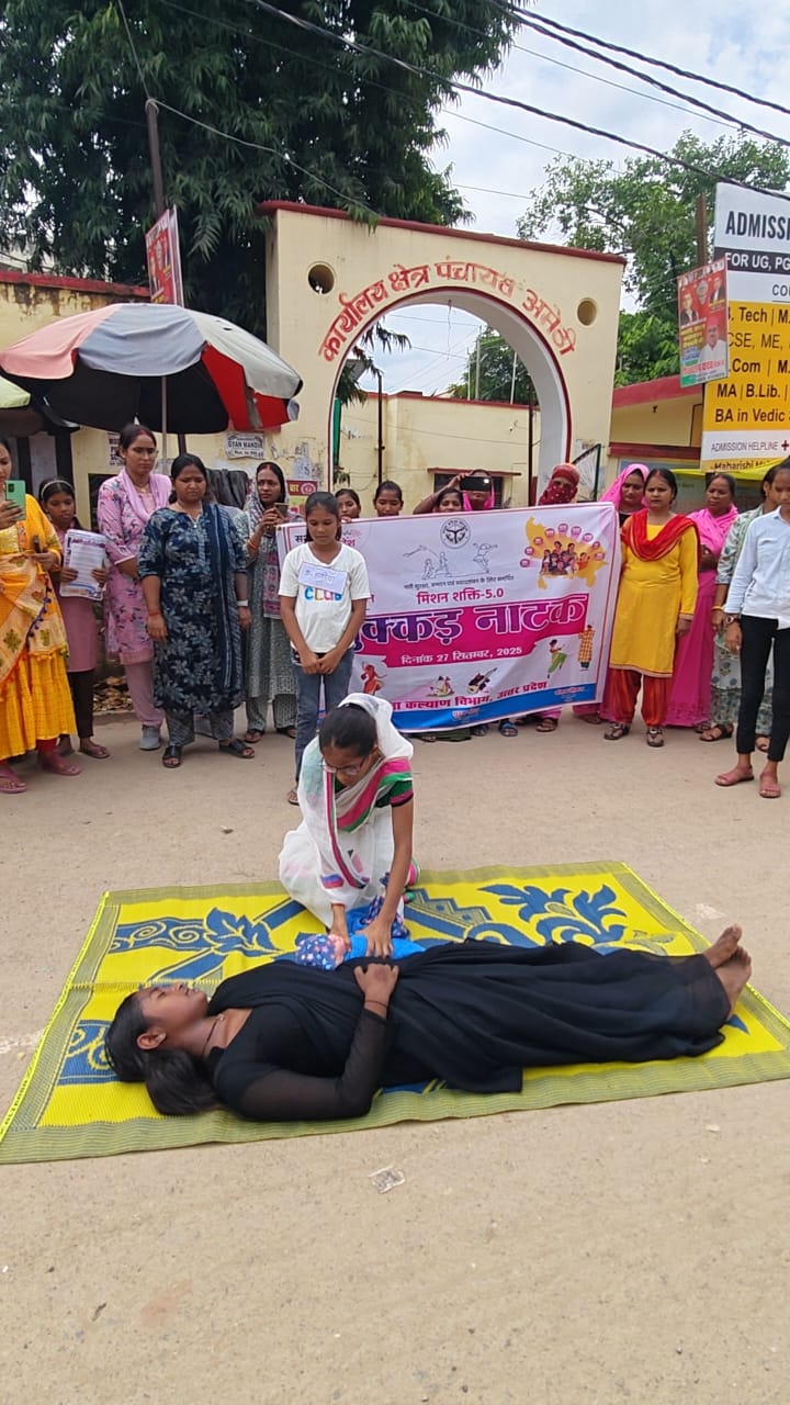 आज दिनांक 27 सितंबर 2025 को मिशन शक्ति 5.0 के अंतर्गत * पर महिला एवं बाल विकास विभाग उत्तर प्रदेश के द्वारा प्रस्तावित कार्यक्रम के अंतर्गत *हब फॉर एंपावरमेंट ऑफ़ वीमेन,चाइल्ड लाइन एवम वन स्टॉप सेंटर की टीम* के द्वारा *उपजिलाधिकारी/प्रभारी जिला प्रोबेशन अधिकारी श्री सात्विक श्रीवास्तव* महोदय के निर्देशानुसार जागरूकता कार्यक्रम का आयोजन *ब्लॉक अमेठी जनपद अमेठी में कस्तूरबा गांधी आवासीय विद्यालय* से बच्चियों द्वारा जागरूकता अभियान रैली एवम *बाल विवाह रोकने तथा चाइल्ड हेल्पलाइन नम्बर का सही उपयोग करने का तरीका एवम *लिंग भेदभाव पर* विशेष **नुक्कड़ नाटक* का आयोजन किया गया। महिला कल्याण विभाग से सभी योजनाओं की जानकारी दी गई। इसके साथ ही महिलाओं और उनसे संबंधित जागरूकता कार्यक्रम* का आयोजन किया गया बालिकाओं व महिलाओं के लिए चल रही योजनाओं का जागरूकता कार्यक्रम करते हुए *मिशन शक्ति 5.0* का फोल्डर तथा सभी महिलाओं से संबंधित योजनाओ का पंपलेट वितरित किया गया इस जागरूकता कार्यक्रम में जैसे *मातृत्व वंदना योजना, मुख्यमंत्री बाल सेवा योजना(कोविड एवम सामान्य), कन्या सुमंगला योजना, सखी वन स्टॉप सेंटर, जननी सुरक्षा योजना, सुरक्षित एवम आदि के बारे में विस्तार से बताते हुए सभी टोल फ्री नंबर महिला हेल्पलाइन 181 , चाइल्ड हेल्प लाइन 1098, वूमेन पावर लाइन 1090, आपातकालीन सेवा 112 , साइबर हेल्पलाइन 1930 , एंबुलेंस सेवा 108* आदि के बारे में विस्तार से जानकारी दी गई तथा उपस्थिति बच्चियों को जागरूक किया गया एवम बच्चियों के अधिकारों, संबंधित योजनाओ, कानूनों एवम मुद्दों पर जन - जनजागरूकता कार्यक्रम कराया गया इस अवसर पर वन स्टॉप सेंटर मैनेजर श्रीमती गायत्री देवी , HEW जेंडर स्पेशलिस्ट श्री राकेश कुमार यादव, चाइल्ड लाइन प्रोजेक्ट कोऑर्डिनेटर गौरव श्रीवास्तव, सुपरवाइजर रोशनलाल , केसवर्कर रुचि सिंह , प्रिंसिपल महोदया, अध्यापिका एवम छात्राएं एवम आमजन आदि की उपस्थित रही l