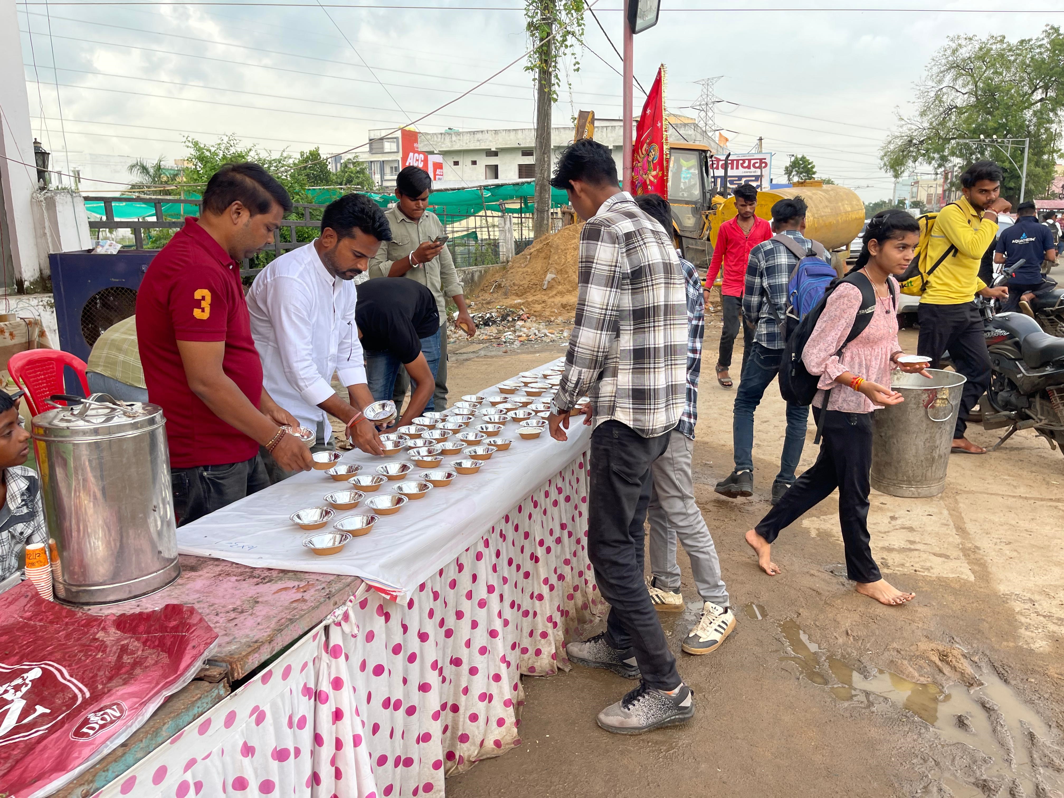 समिति के वरिष्ठ सदस्य श्री राजेंद्र मालवीय जी के सहयोग से आज भी प्रसाद वितरण का कार्य सफलतापूर्वक संपन्न किया गया। इस दौरान, समिति के सभी सदस्यों ने मिलकर सेवा भाव से श्रद्धालुओं को फलाहार भेंट किया।