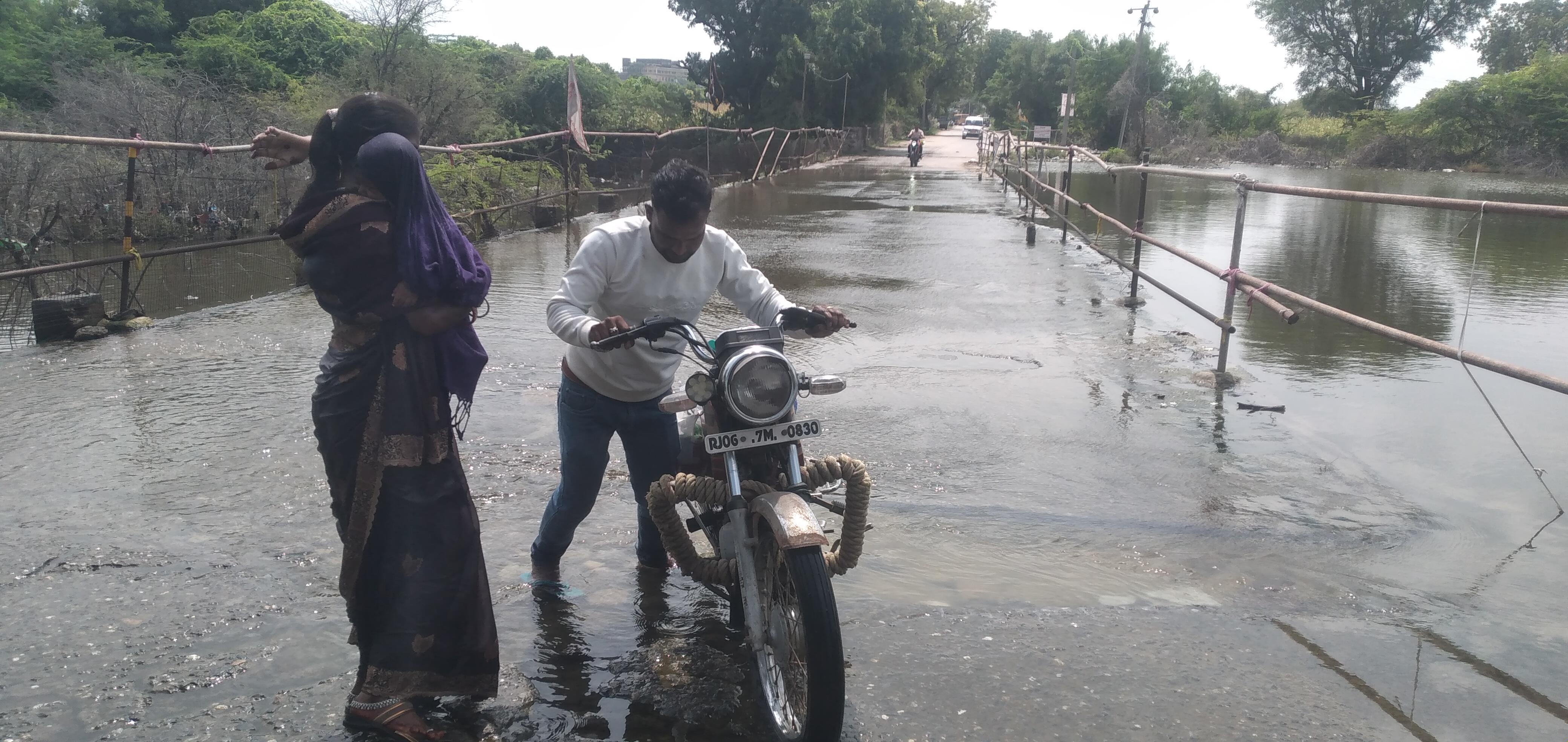 हकीकत उजागर की तो स्थानीय विधायक को अखर गई बात, पुलिया पर कांजी जमने से फिसल रहे थे वाहनचालक, विधायक का कहना- की पानी में निर्माण कार्य नहीं होता