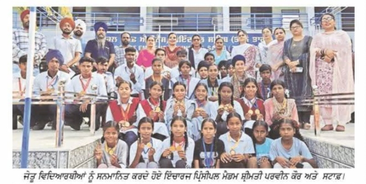 ਜੇਤੂ ਵਿਦਿਆਰਥੀਆਂ ਨੂੰ ਸਨਮਾਨਿਤ ਕਰਦੇ ਹੋਏ ਇੰਚਾਰਜ ਪ੍ਰਿੰਸੀਪਲ ਮੈਡਮ ਸ੍ਰੀਮਤੀ ਪਰਵੀਨ ਕੌਰ ਅਤੇ ਸਟਾਫ਼