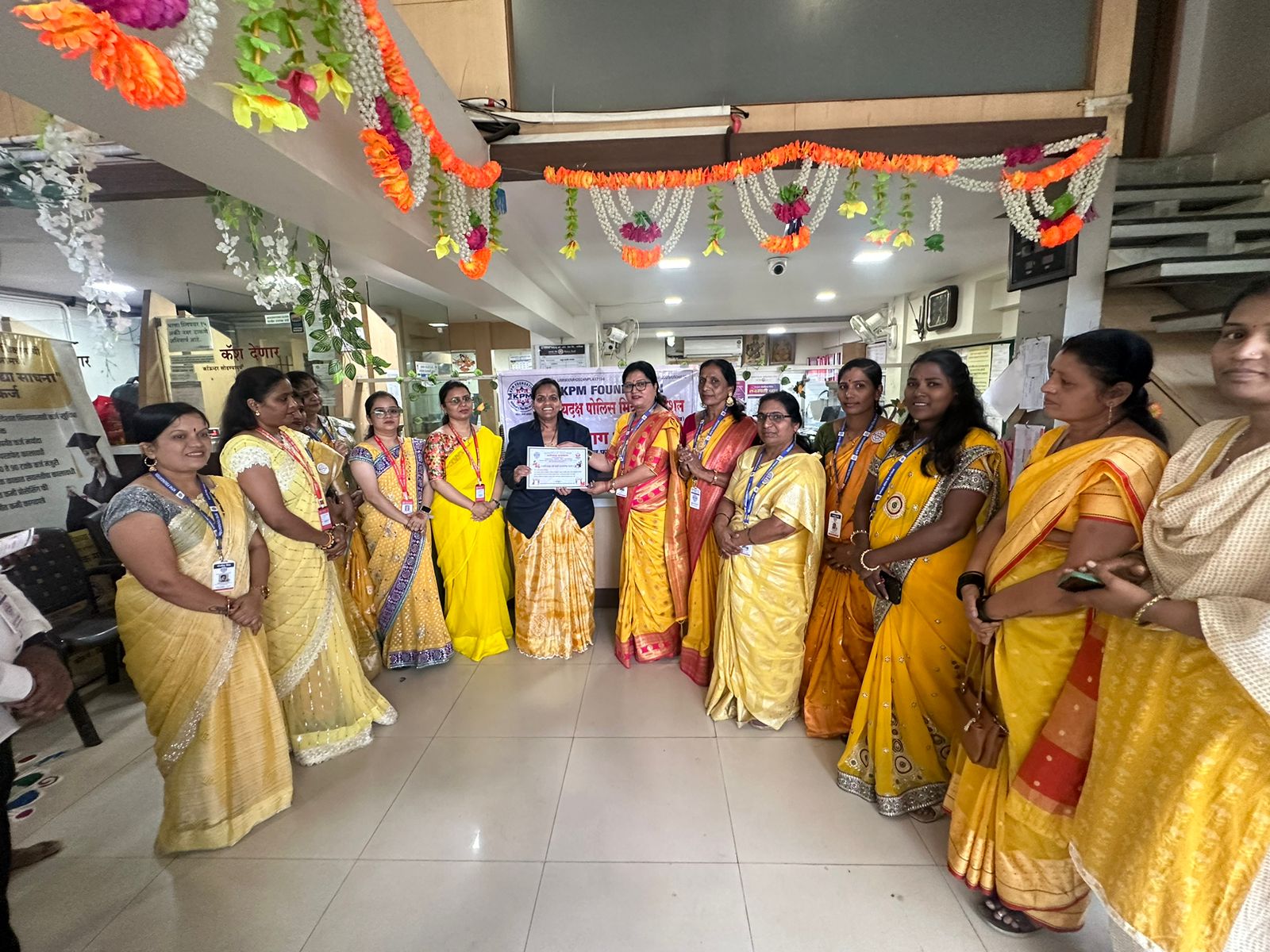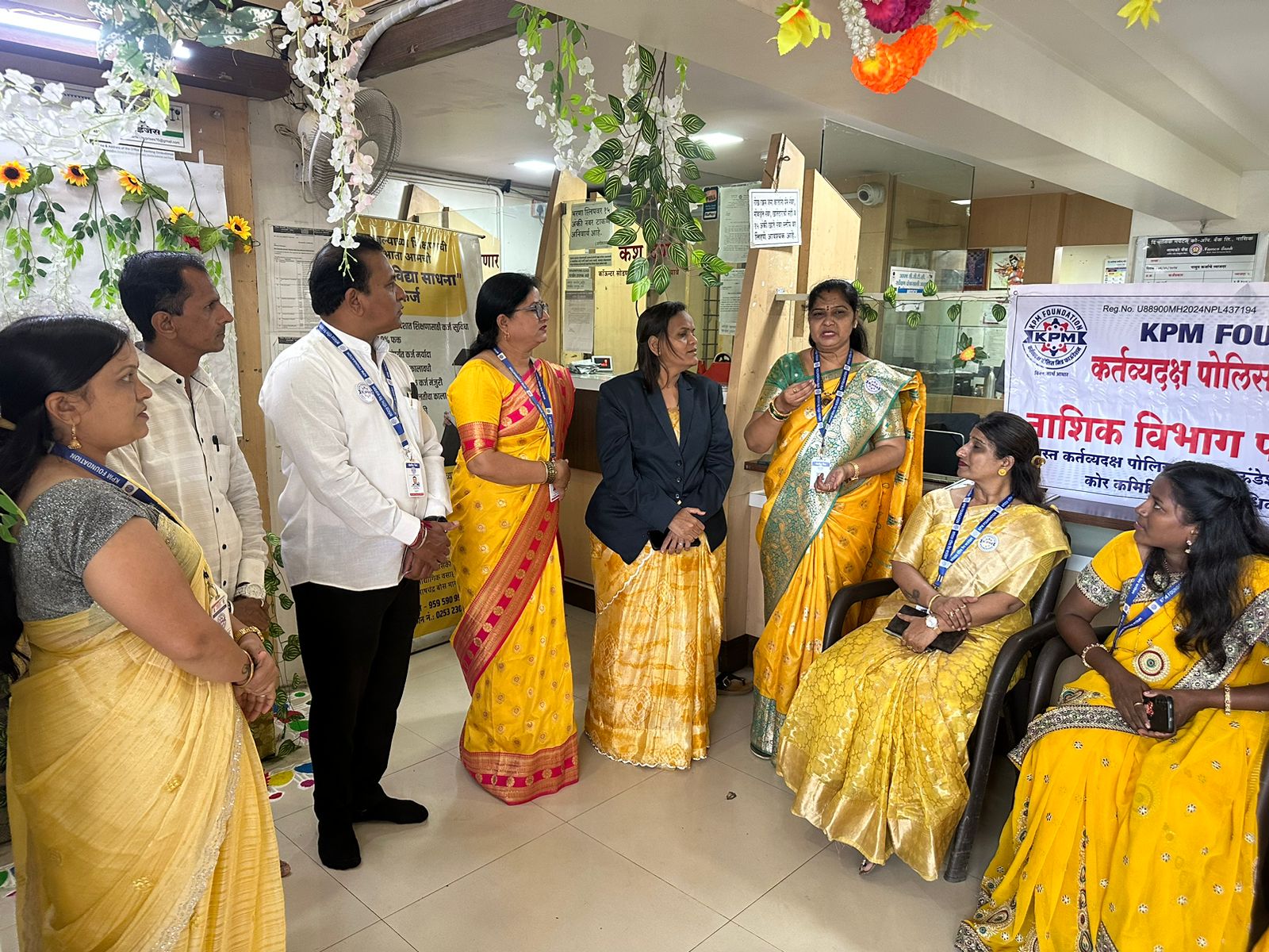 कर्तव्यदक्ष पोलिस मित्र फाउंडेशनच्या वतीने नवरात्रोत्सव निमित्ताने कर्तव्यदक्ष स्त्री शक्ती सन्मानपत्र २०२५ दि. मर्चंट को. ऑप. बँक. शाखा नासिक रोड येथील शाखेत संस्थेच्या पदाधिकारी व प्रोजेक्ट डायरेक्टर म्हणून ज्यांनी पुढाकार घेतला व यशस्वी करण्यासाठी प्रयत्न केला सौ. निकिता पवार मॅडम यांच्या पुढाकाराने व कर्तव्यदक्ष पोलिस मित्र फाऊंडेशन राष्ट्रीय अध्यक्ष श्री सुनिल परदेशी सर तसेच राष्ट्रीय महिला संघटक मंत्री सौ आरतीताई आहिरे यांच्या मार्गदर्शनाखाली मोठ्या उत्साहाने साजरा करण्यात आला आज बॅकच्या मॅनेजर तृप्ती बाफना मॅडम व सहकारी कोमल कुलथे प्रतिभा भालेराव अश्विनी कवरे . विशेष आभार श्री अनिल पवार, उमेश नागरे , आकाश आढाव आपण काल बॅकच्या वतीने आलेल्या सर्व पदाधिकारी यांची चहापाणी वगैरे ची व्यवस्था केली त्याबद्दल मनापासून धन्यवाद कर्तव्यदक्ष स्त्री शक्ती सन्मानपत्र देऊन सन्मानित करण्यात आले तसेच बॅकिंग क्षेत्रातील महत्त्वाच्या विषयावर चर्चा करून योग्य मार्गदर्शन केले याप्रसंगी कर्तव्यदक्ष पोलिस मित्र फाउंडेशनच्या वतीने सुनिल परदेशी, आरती ताई आहिरे, सिमा पंडित, आशा भालेराव, ॲड. दिप्ती गवळी मॅडम, रुपाली तांबारे, स