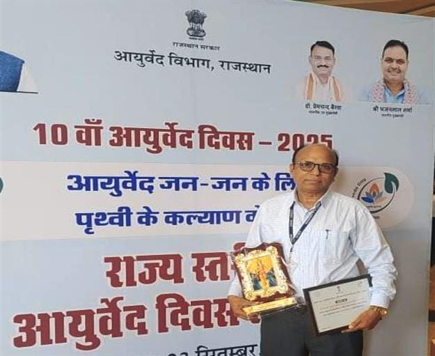 आयुर्वेद निदेशालय अजमेर के सहायक निदेशक डॉ. विनोद कुमार शर्मा को राज्य स्तरीय धन्वंतरि अवॉर्ड