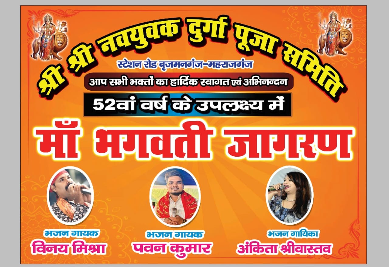 नगर पंचायत बृजमनगंज के श्री नव युवक दुर्गा पूजा समिति, स्टेशन रोड बृजमनगंज, अपने 52वें वर्ष में प्रवेश करने के उपलक्ष्य में एक भव्य आयोजन करने जा रही है।